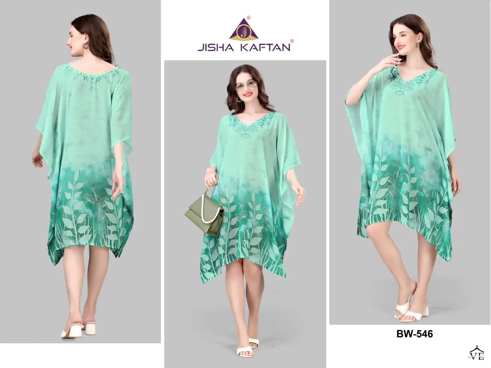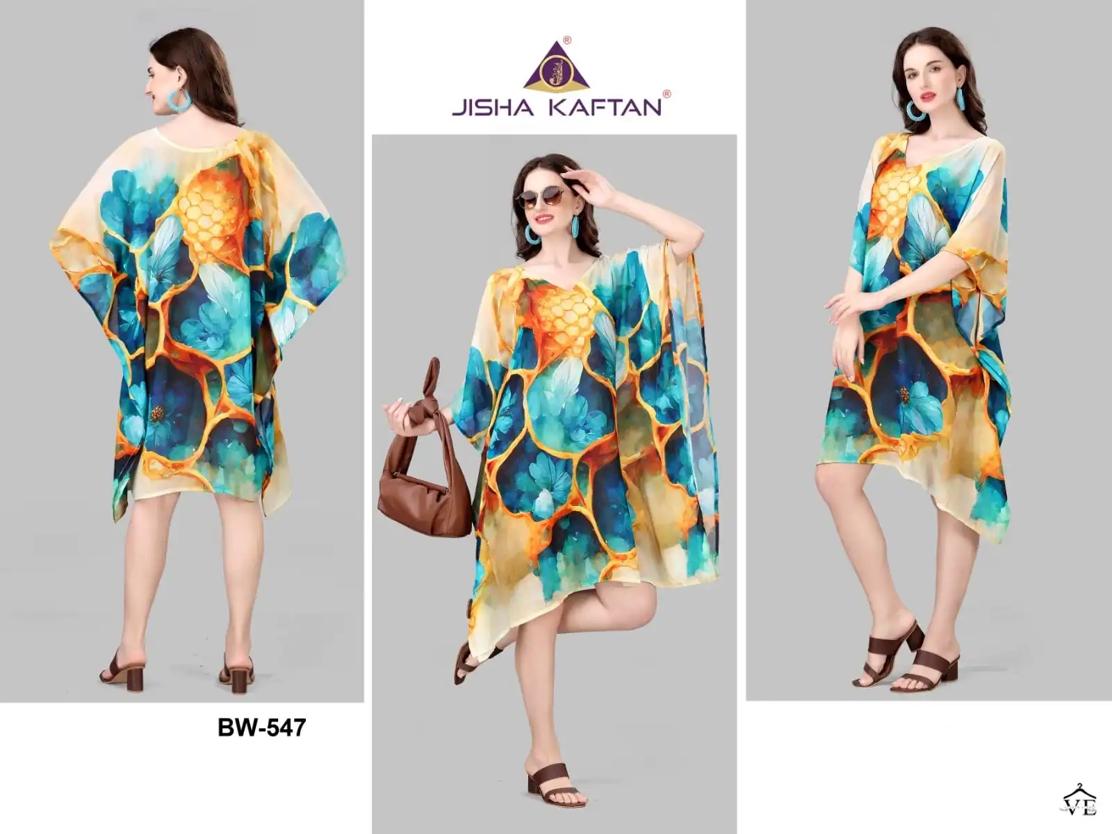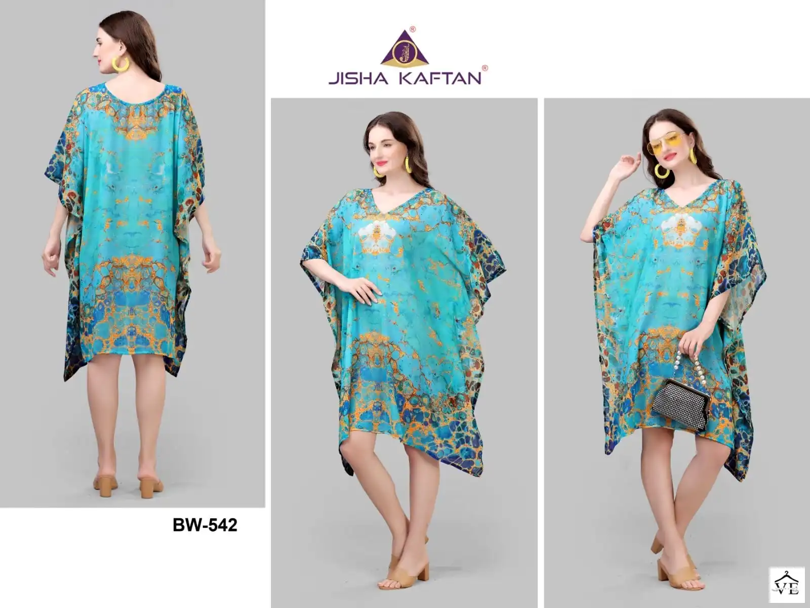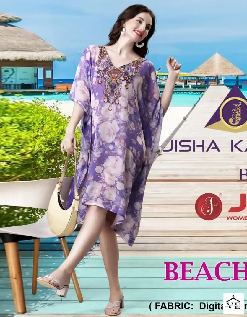 Jelite Beachwear Weightless Georgette Wholesale Kaftan Catalog of 8 Pcs. We deal in Kurtis, Sarees, Dresses Materials, Leggings, and Designer Salwar Kameez.