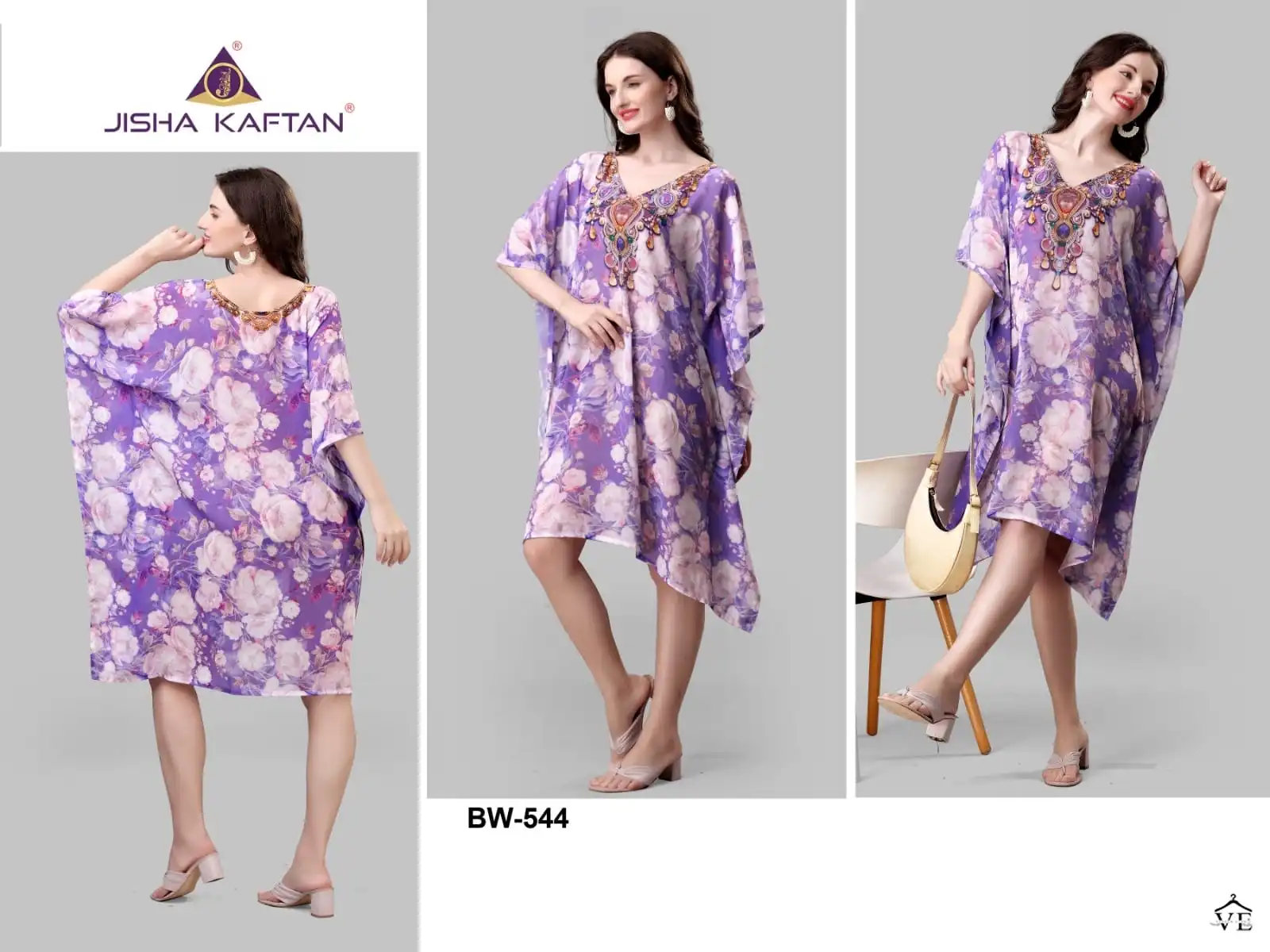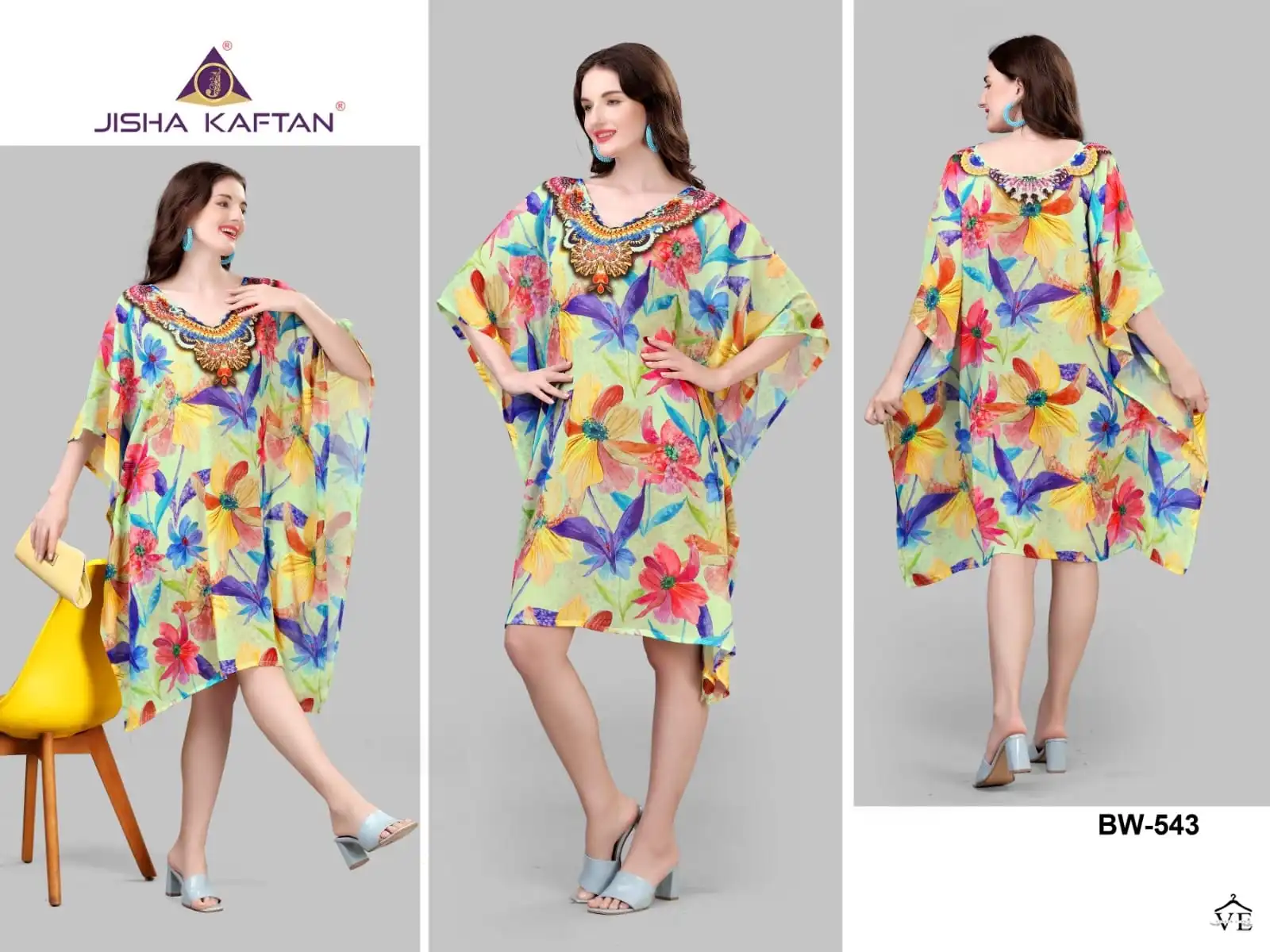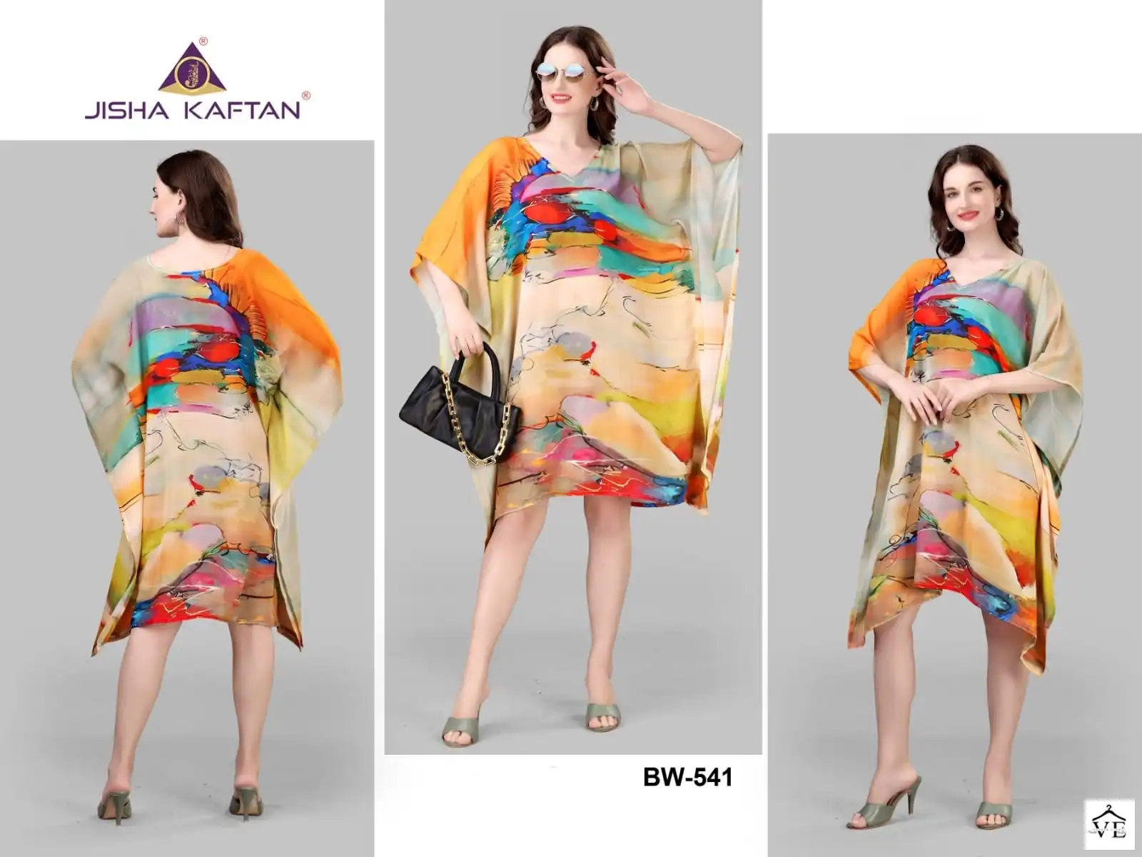 Jelite Beachwear Weightless Georgette Wholesale Kaftan Catalog of 8 Pcs. We deal in Kurtis, Sarees, Dresses Materials, Leggings, and Designer Salwar Kameez.