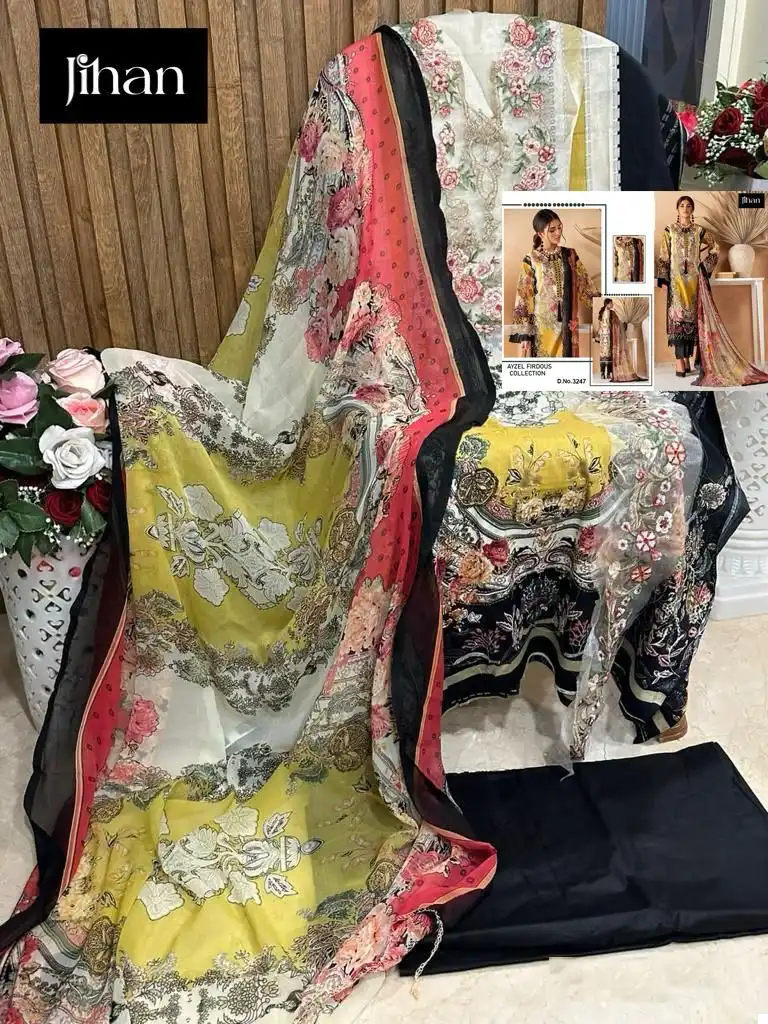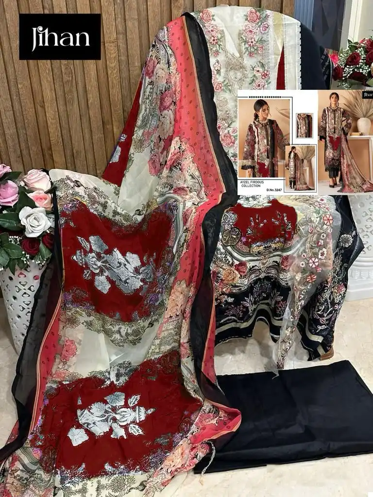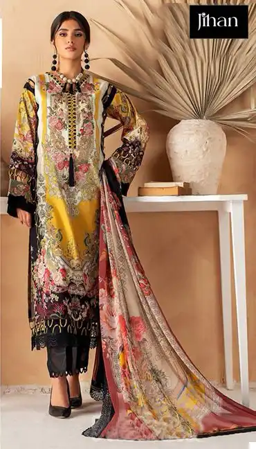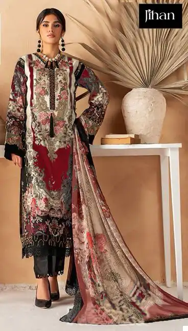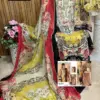 This suit set combines traditional embroidery with modern fabric choices, making it ideal for a variety of settings from daily wear to special occasions. The availability of different dupatta materials allows for personalization and adaptability to different tastes and preferences.