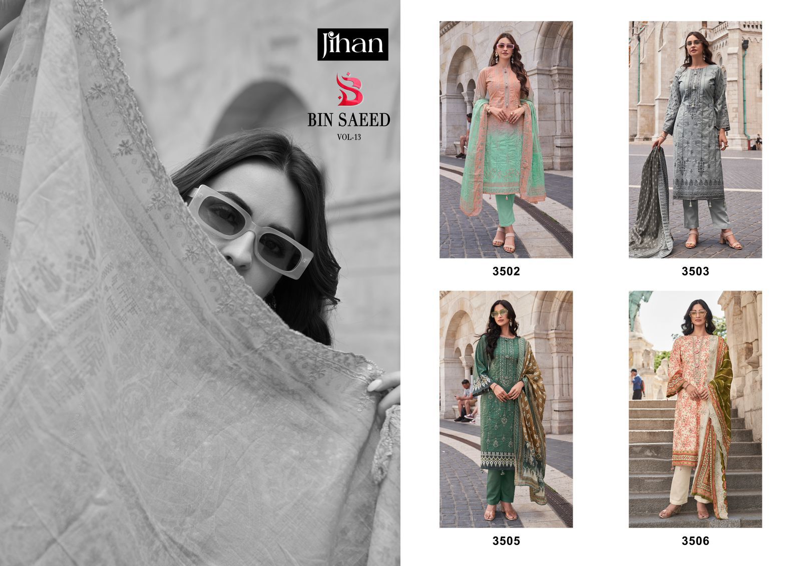 Catalog Name: Jihan Bin Saeed Vol 13 Lawn Printed Wholesale Pakistani Salwar Suit Collection