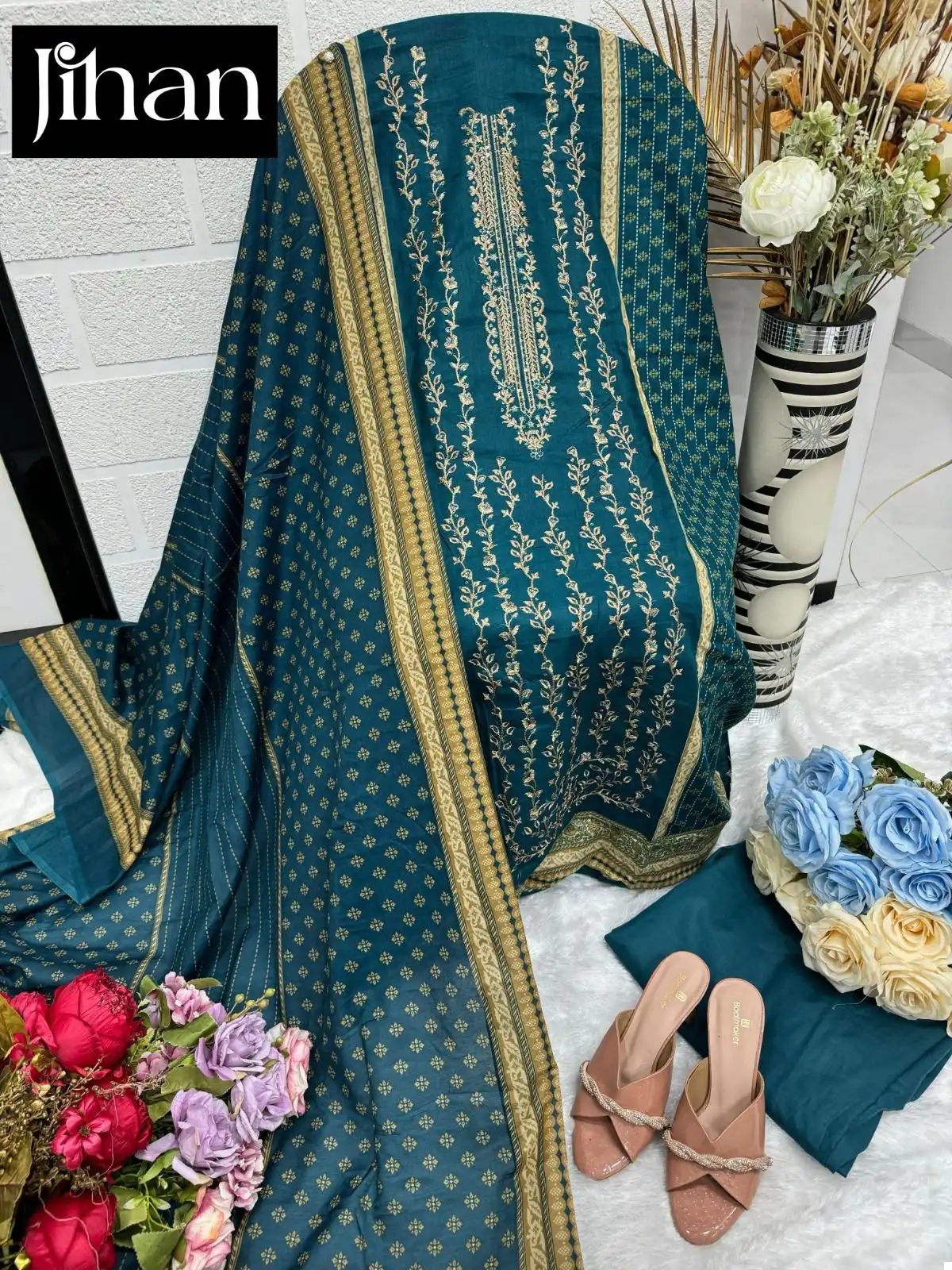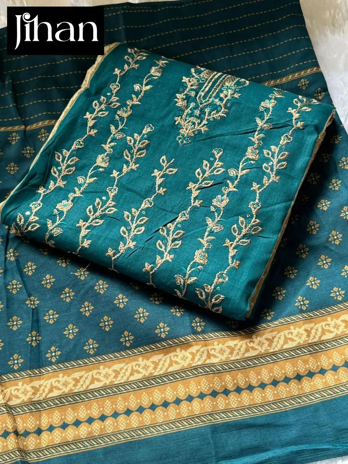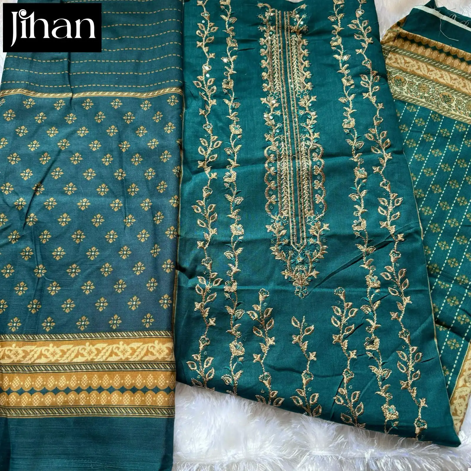 - Top: Pure Lawn Print featuring Exclusive Heavy Self Embroidery, offering timeless sophistication.
