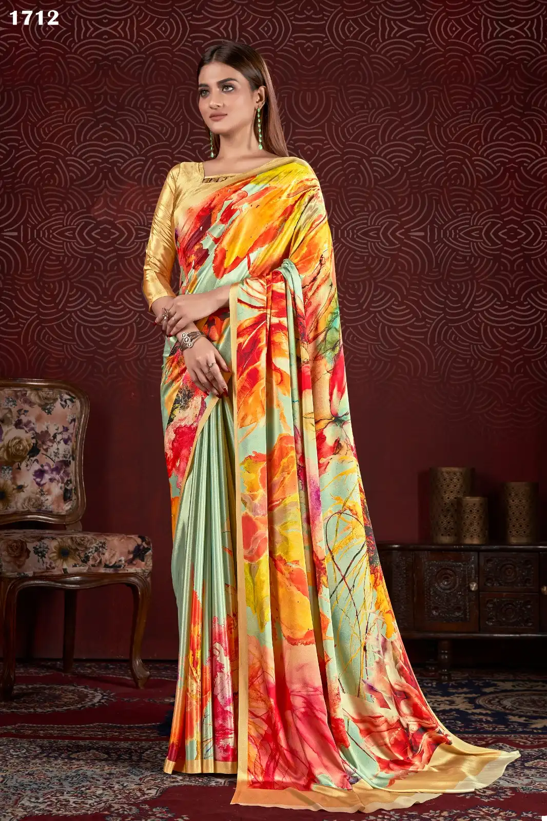 - Dry clean the saree to maintain its silk texture and preserve the digital prints.