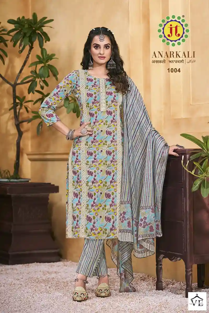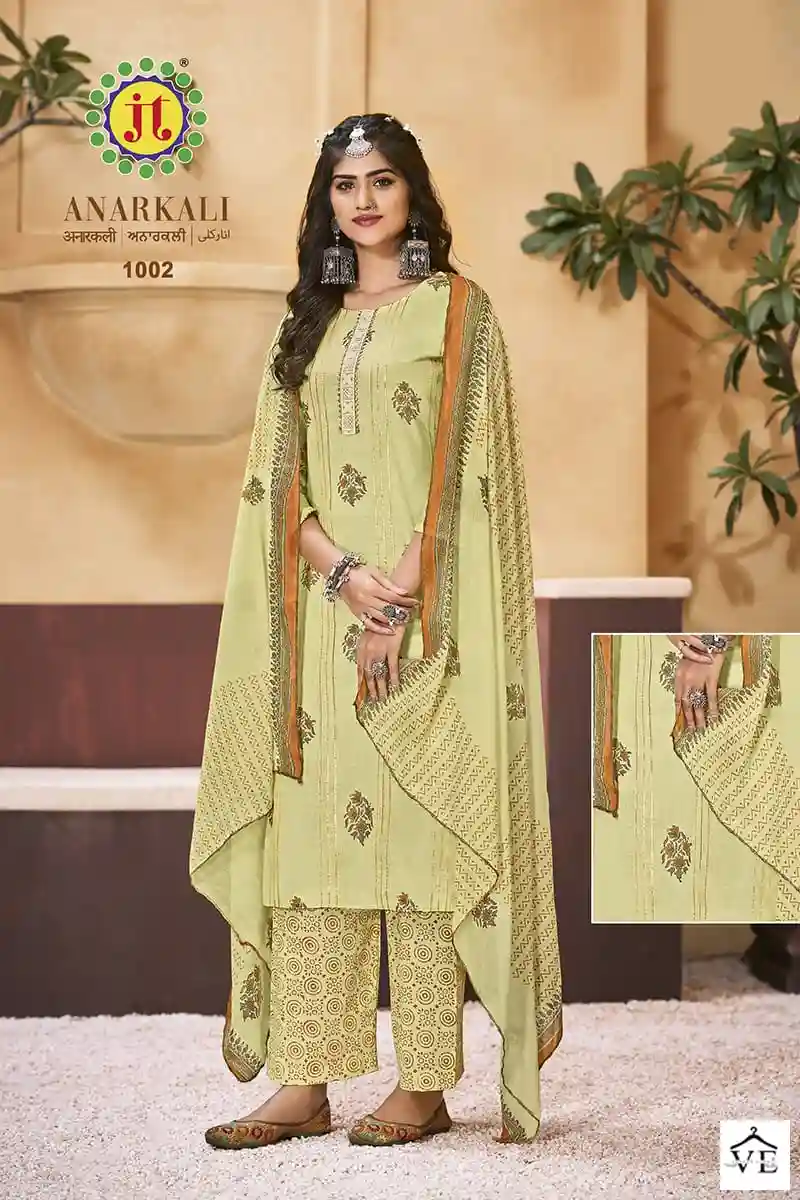 JT Anarkali Lawn Wholesale Salwar Suit Catalog of 8 Pcs. We deal in Kurtis, Sarees, Dresses Materials, Leggings, and Designer Salwar Kameez.