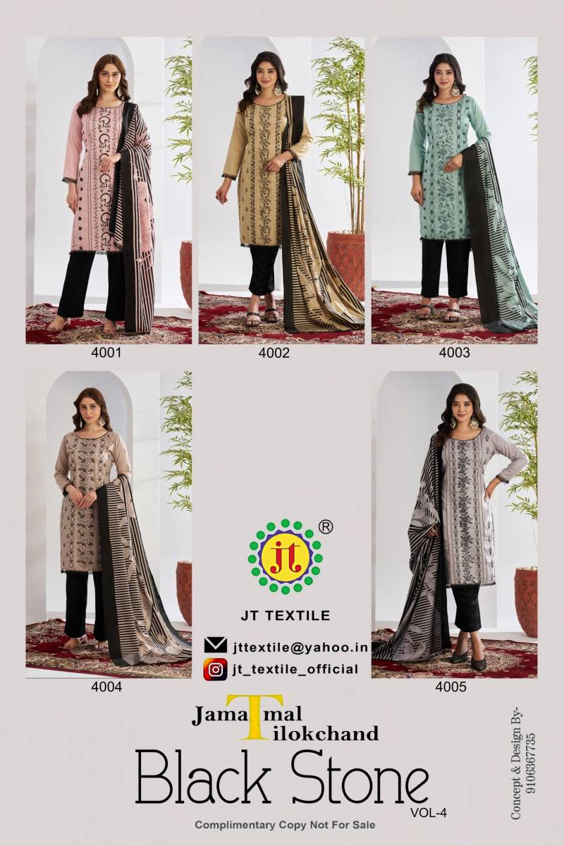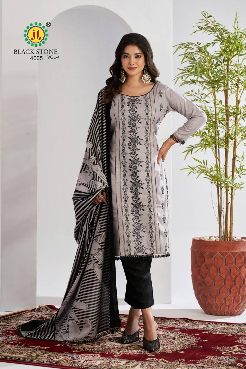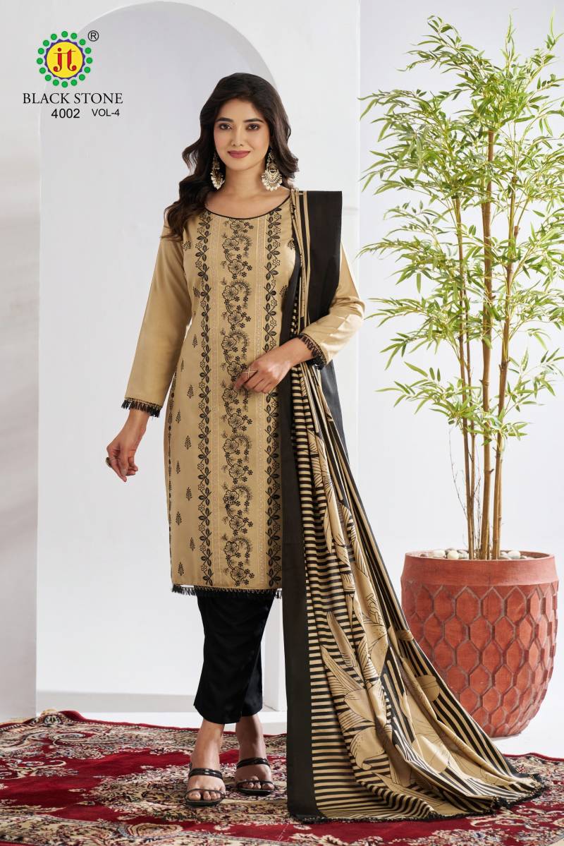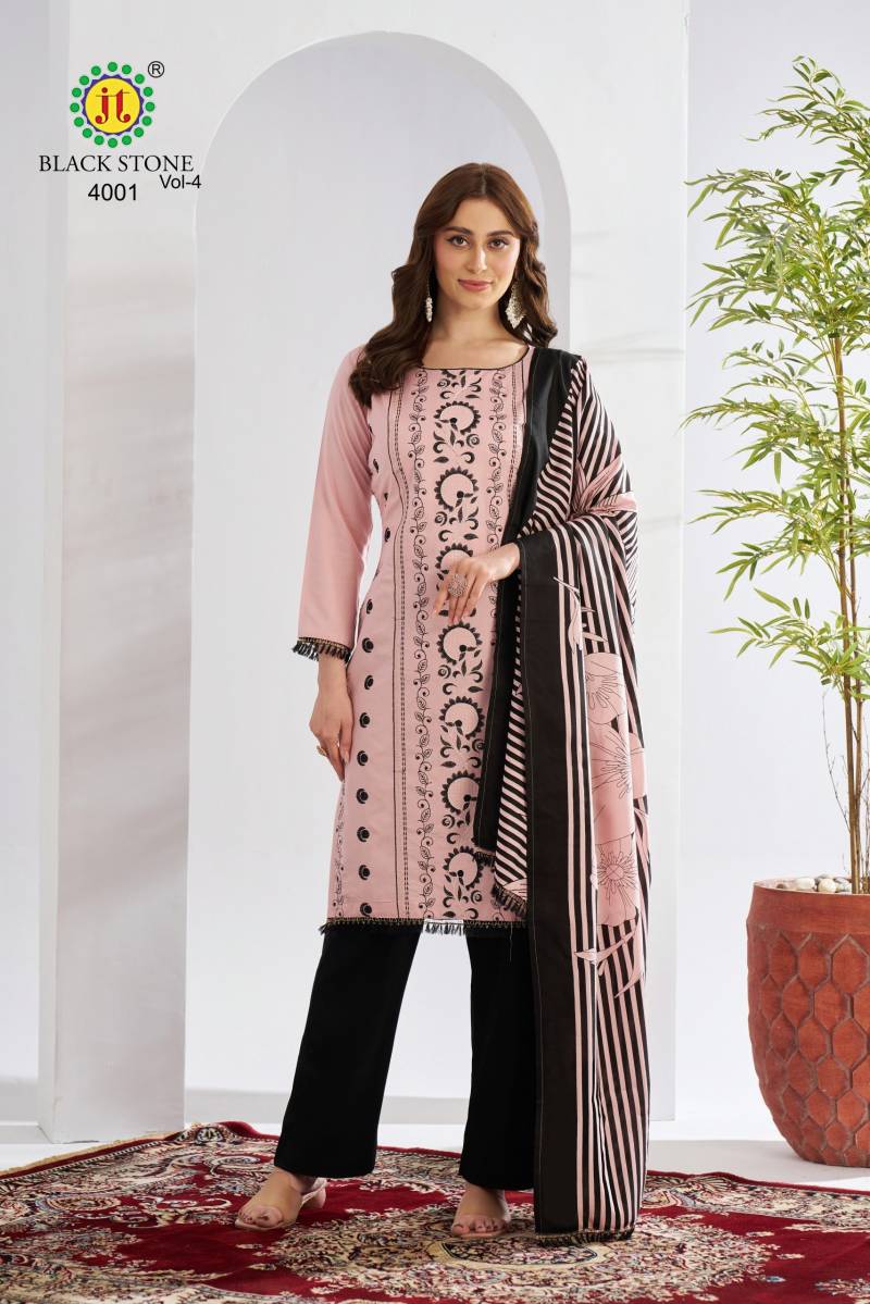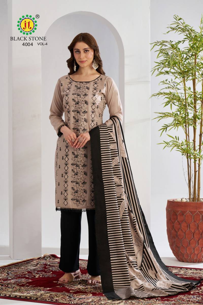 Jt Black Stone Vol 4 Rayon Embroidery Dress Material Wholesale Collection.