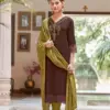 Dupatta – Chinon Bandhani: The ensemble is beautifully complemented by a chinon bandhani dupatta, adorned with traditional bandhani patterns. It adds a vibrant and artistic element to your look.