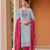 Top – Viscose Weaving Handwork & Embroidery: The top in this ensemble is crafted from viscose fabric, known for its luxurious drape and comfort. It features intricate handwork and embroidery, adding a touch of opulence to your attire.