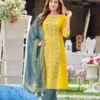 Immerse yourself in the world of elegance and comfort with our latest collection. This beautifully crafted suit set is perfect for women who appreciate style and quality. The set includes a top, bottom, and a dupatta, each piece complementing the other to create a harmonious and stylish ensemble.