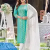 Immerse yourself in the world of elegance and comfort with our latest collection. This beautifully crafted suit set is perfect for women who appreciate style and quality. The set includes a top, bottom, and a dupatta, each piece complementing the other to create a harmonious and stylish ensemble.