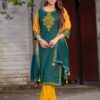 - Top: Rayon print with exquisite handwork and embroidery detailing.