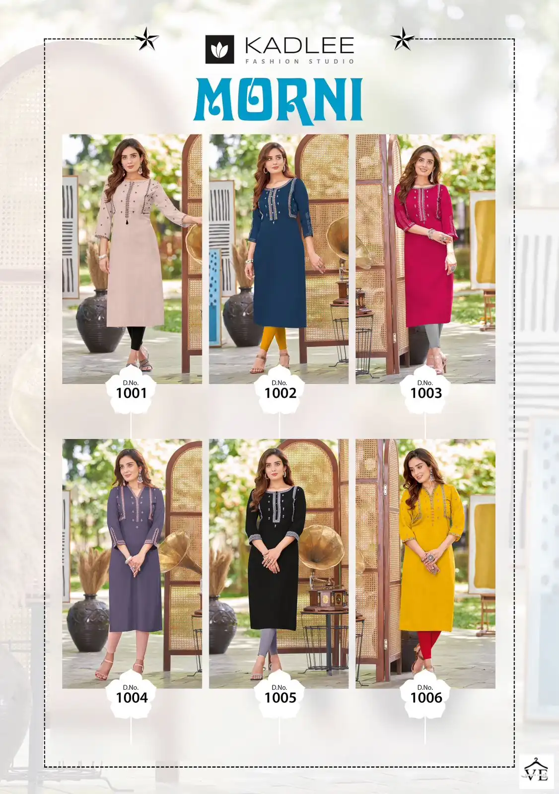 Kadlee Morni Heavy Rayon Wholesale Fancy Kurtis Catalog 6 Pcs. We deal in Kurtis, Sarees, Dresses Materials, Leggings, and Designer Salwar Kameez.