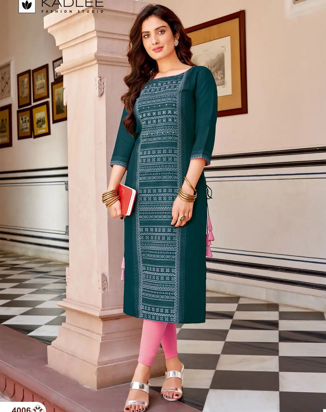 Kadlee Niharika Rayon Print Wholesale Kurti Catalog