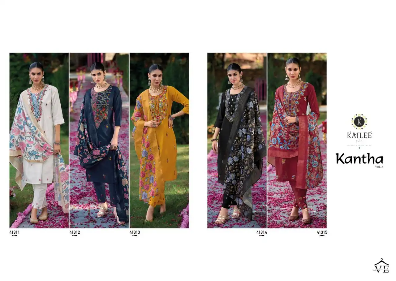 Kailee Fashion Kantha Vol 3 Pure Viscose Silk Wholesale Designer Readymade Salwar Suit Catalog 5 . We deal in Kurtis, Sarees, Dresses Materials, Leggings, and Designer Salwar Kameez.