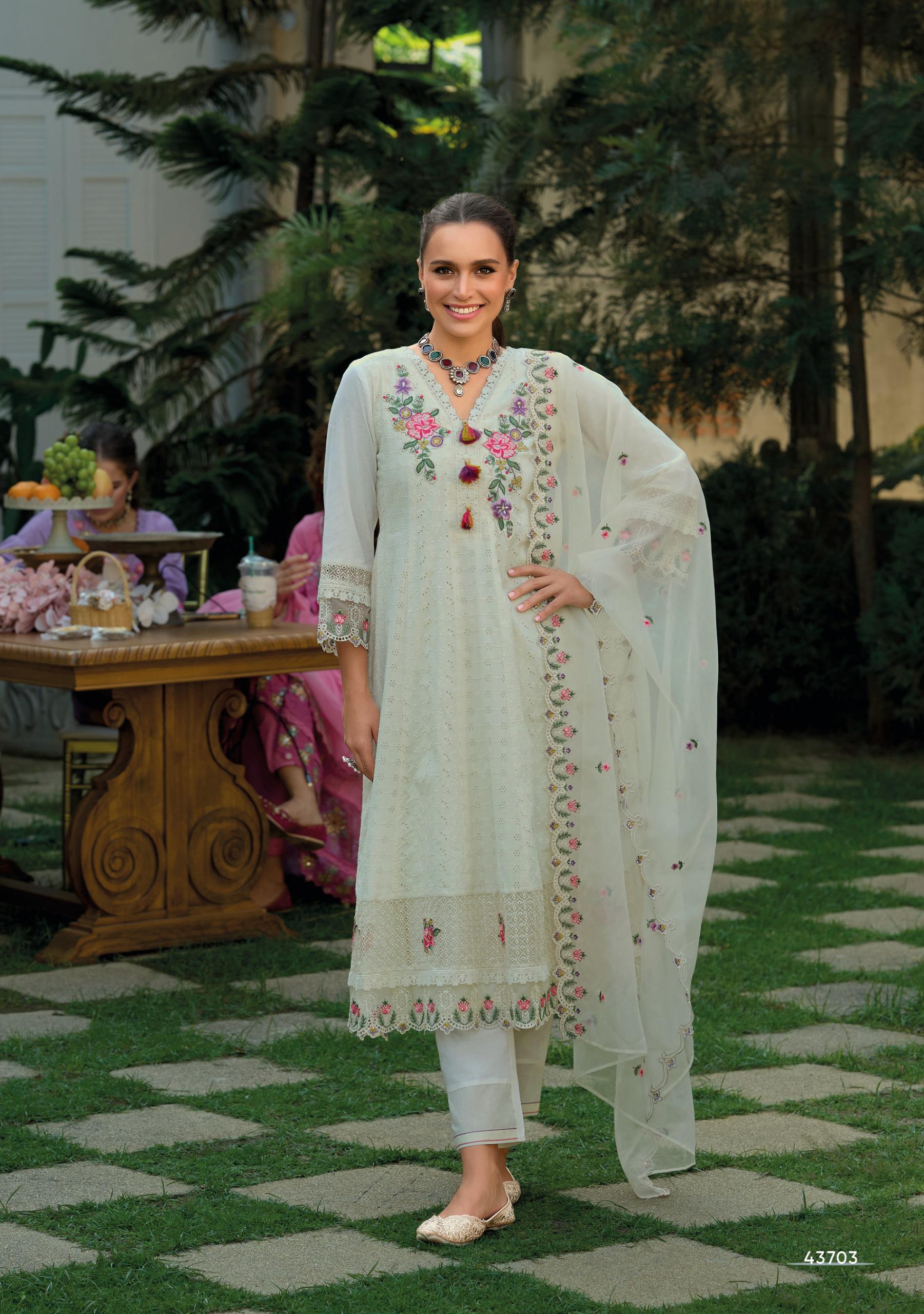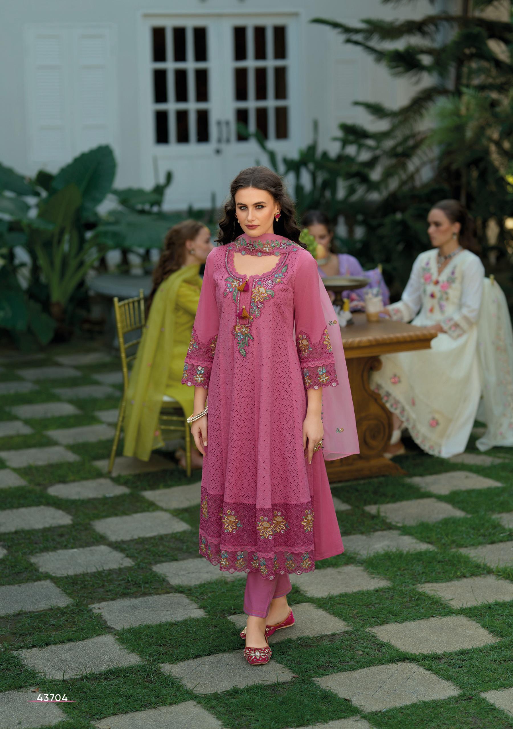 Kailee Fashion Nazm Designer Chikankari Cotton Anarkali Suit Wholesale Catalog.