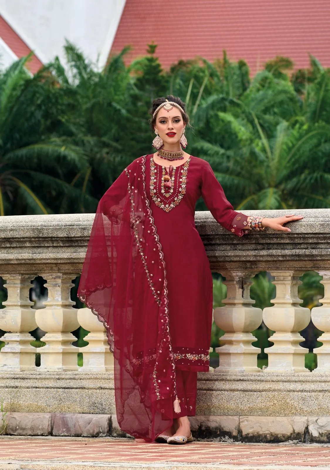 | Dupatta | Pure Viscose Organza Silk Embroidery Work + Heavy Fancy Work |
