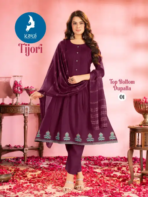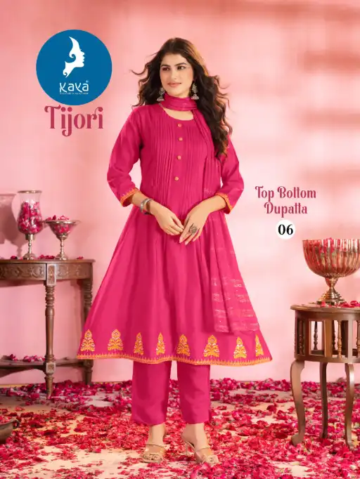 Buy Kaya Kurti Tijori catalog 3-piece Anarkali sets at a wholesale rate.