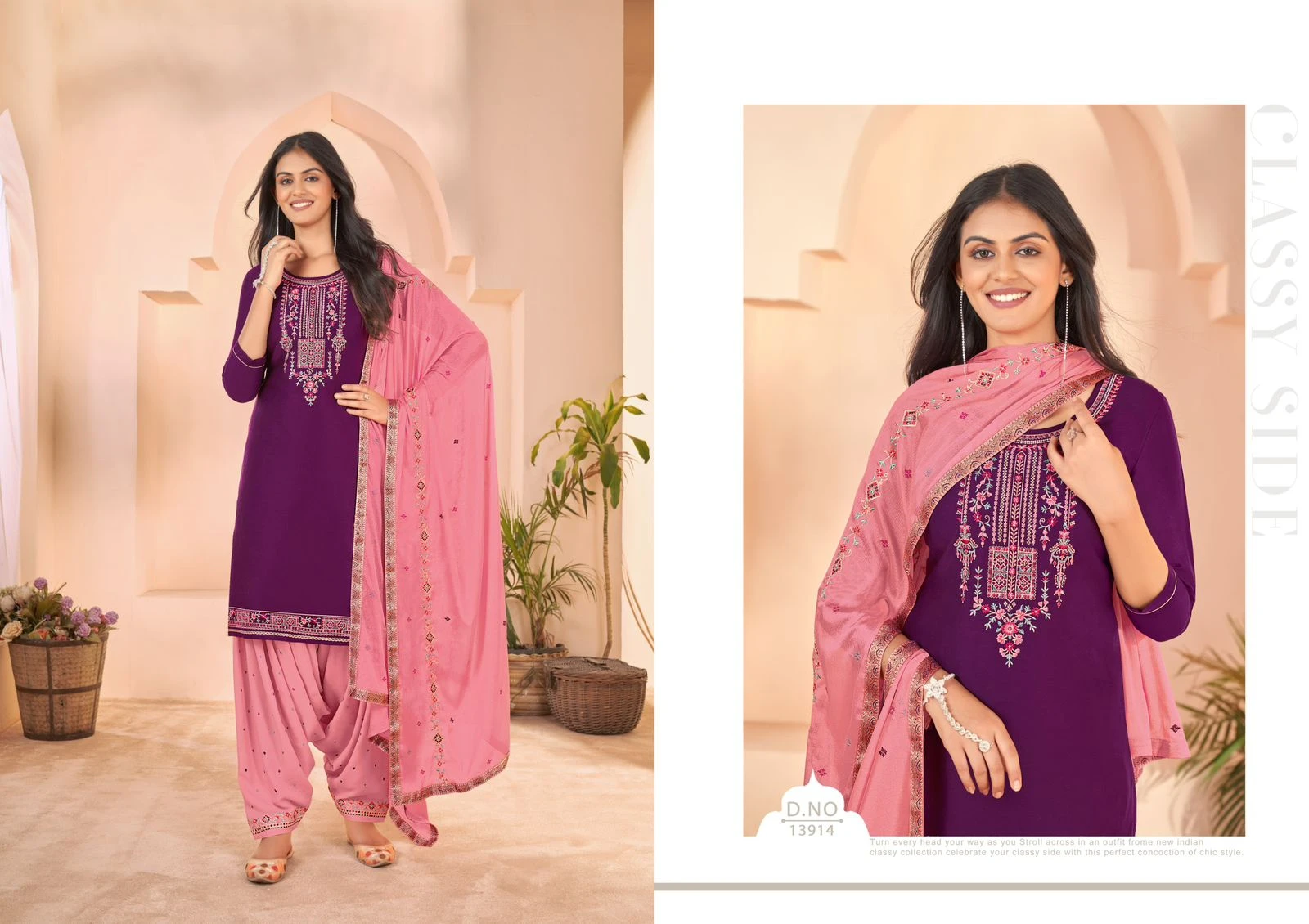 Enhance your ethnic wardrobe with this exquisite Jam Silk Embroidered Suit with Swarovski Work. This suit set combines luxurious fabrics with intricate detailing, making it a perfect choice for special occasions and festive celebrations.