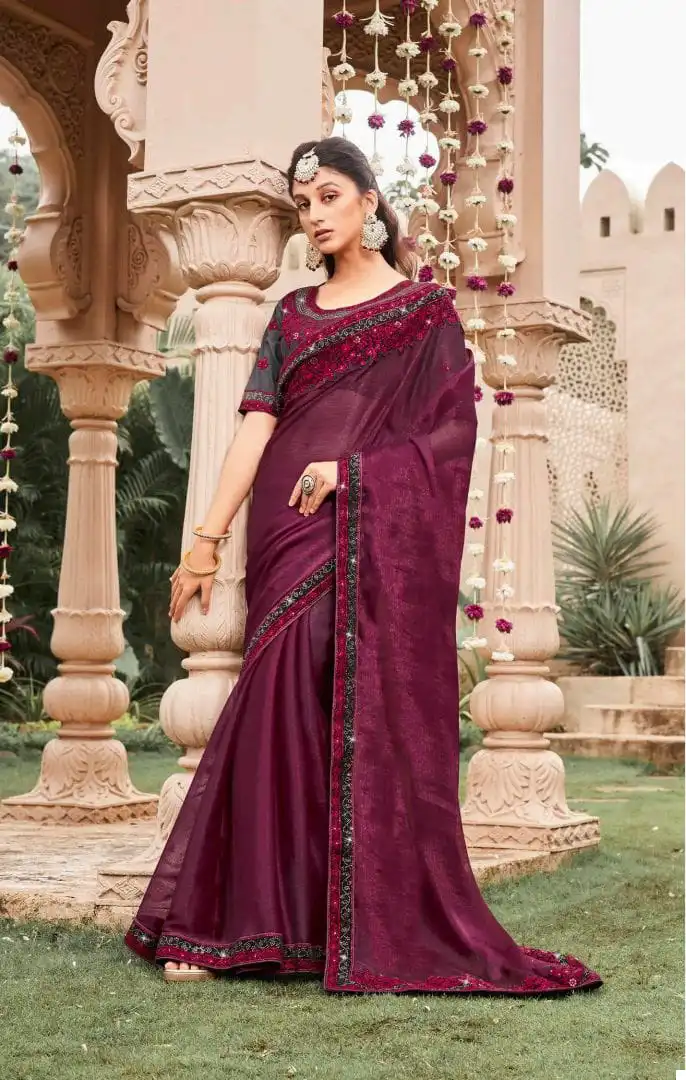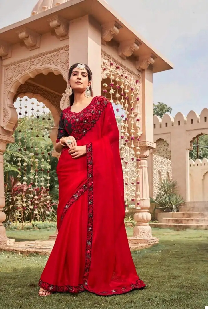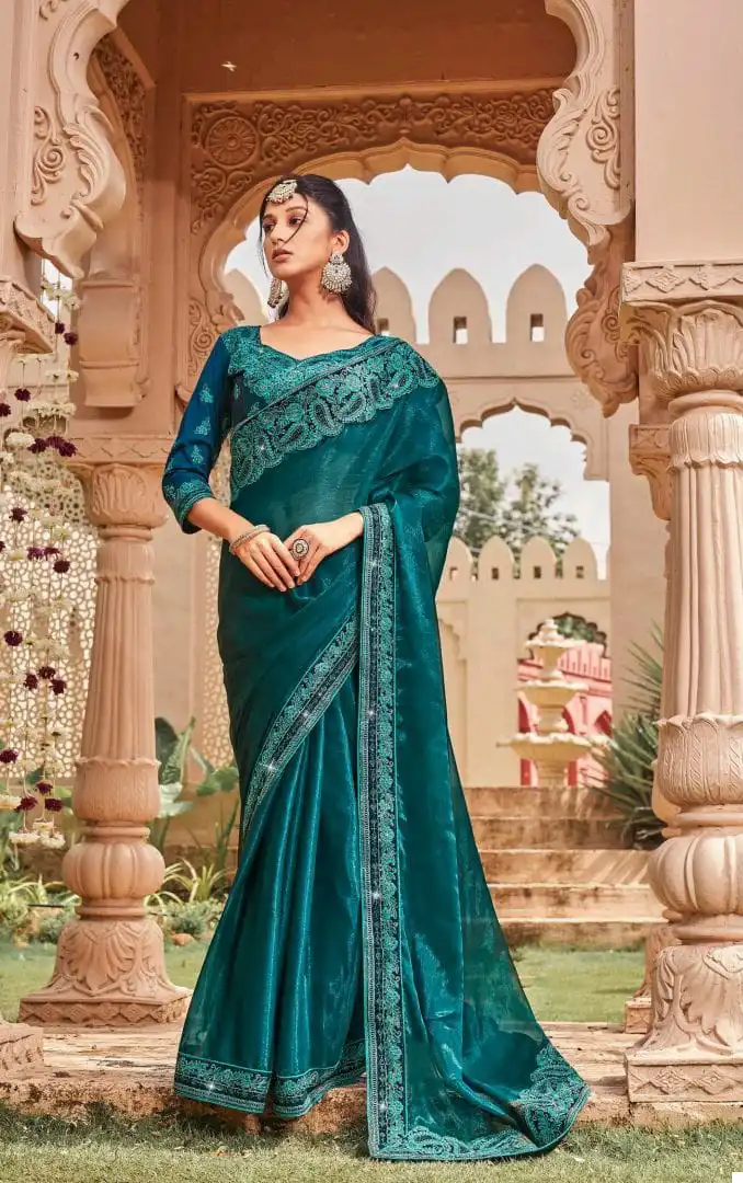 - Fancy Blouse: Accompanying the saree is an intricately designed Fancy Blouse that complements the saree’s extravagance. The blouse adds a contemporary edge to your traditional attire, giving you the freedom to personalize your look with modern flair.