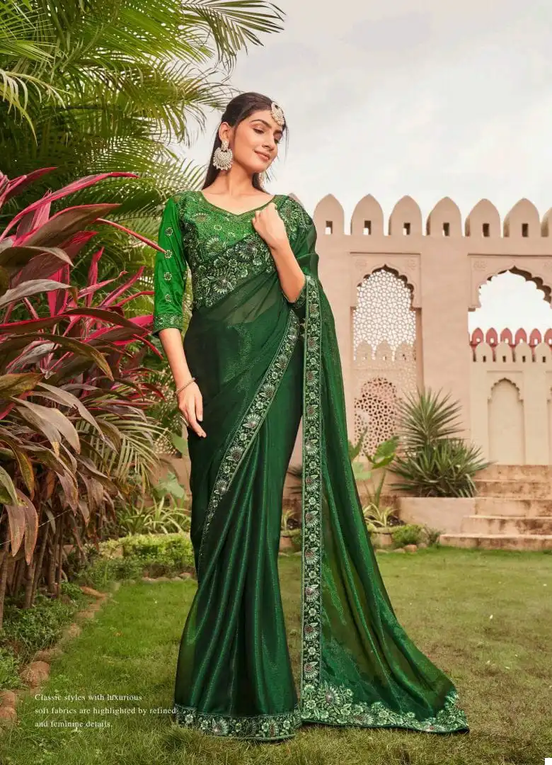 - Blooming Shimmer Saree: Each piece in this collection features a Blooming Shimmer Saree that captivates with its shimmering allure. These sarees exude sheer luxury and a touch of glamour, making them perfect for grand occasions, weddings, or any event where you want to make a statement.