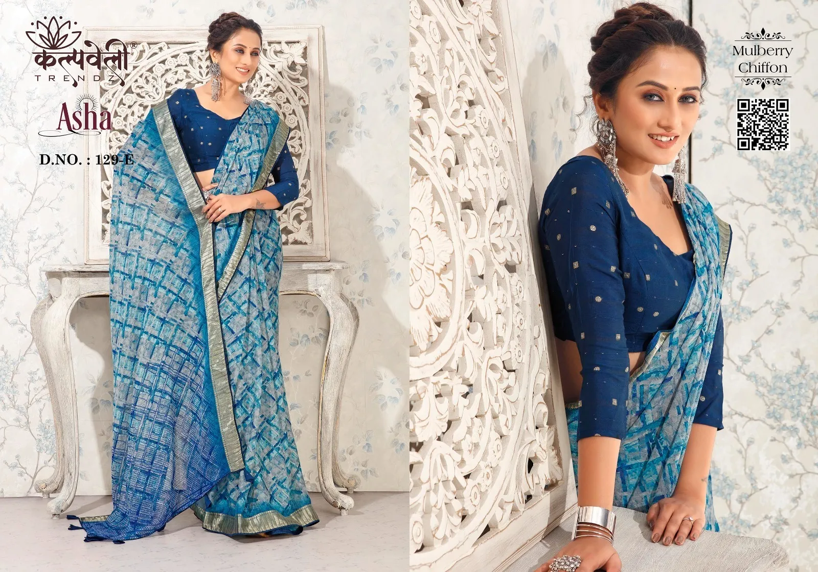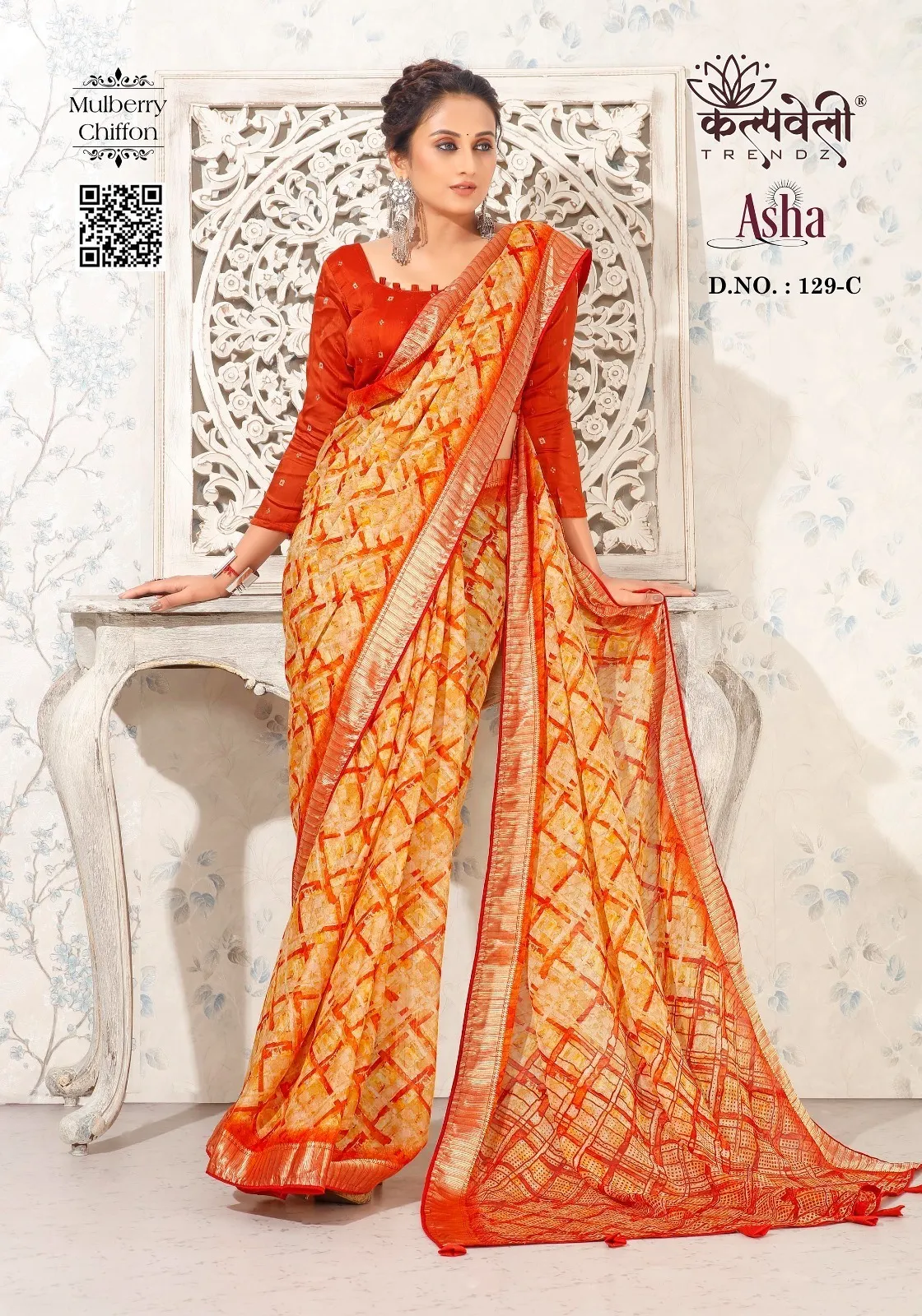 Kalpatru Fashion Asha 129 Mulberry Chiffon Wholesale Sarees Collection