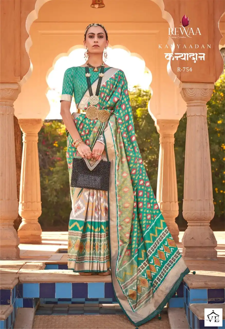 Kanyadan Revaa Patola Silk Wholesale Saree Catalog 12 Pcs. We deal in Kurtis, Sarees, Dresses Materials, Leggings, and Designer Salwar Kameez.