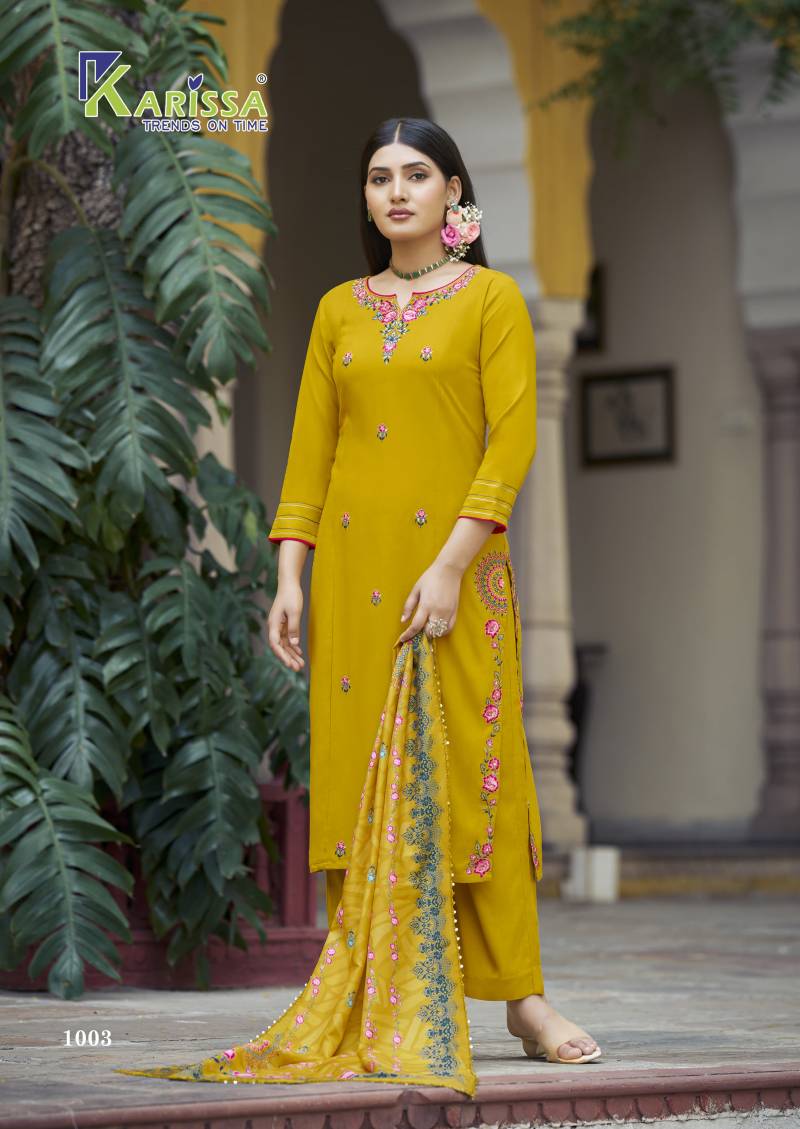 Karissa Aastha Wholesale Rayon Kurti With Bottom Dupatta Catalog.