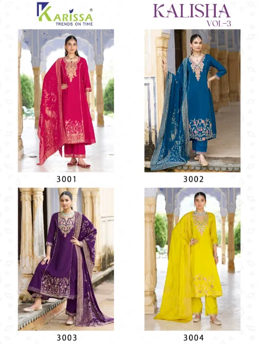 Karissa Kalisha Vol 3 Wholesale Viscose Roman Kurti With Bottom Dupatta.