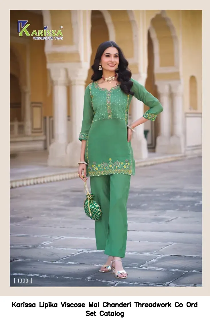Karissa Lipika Viscose Mal Chanderi Threadwork Co Ord Set Catalog