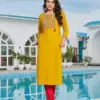 Karissa Rehana Vol-3 Premium Rayon Wholesale Kurti Catalog of 8 Pcs. We deal in Kurtis, Sarees, Dresses Materials, Leggings, and Designer Salwar Kameez.