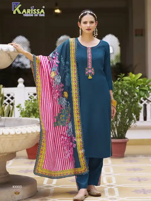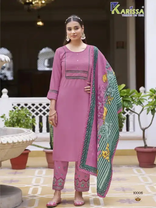 ✨ This season, Karissa brings you affordable luxury—stitched LIVA rayon kurti sets with handcrafted touches and vibrant digital dupattas. Comfort meets elegance for your everyday festive look!