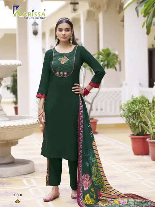 Karissa Vidisha Vol-10 Wholesale Rayon Kurti With Bottom Dupatta.