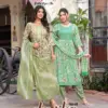 Bottom Heavy Calsule foil Print Full Neck Embroidery With 3 Side Patti work