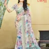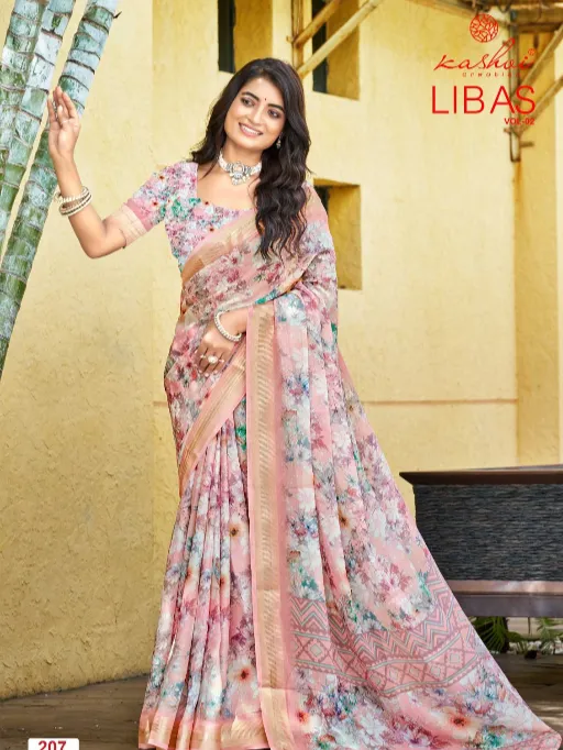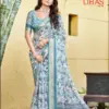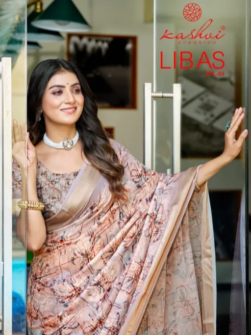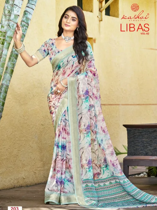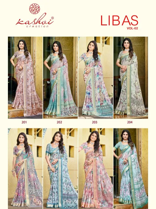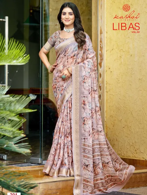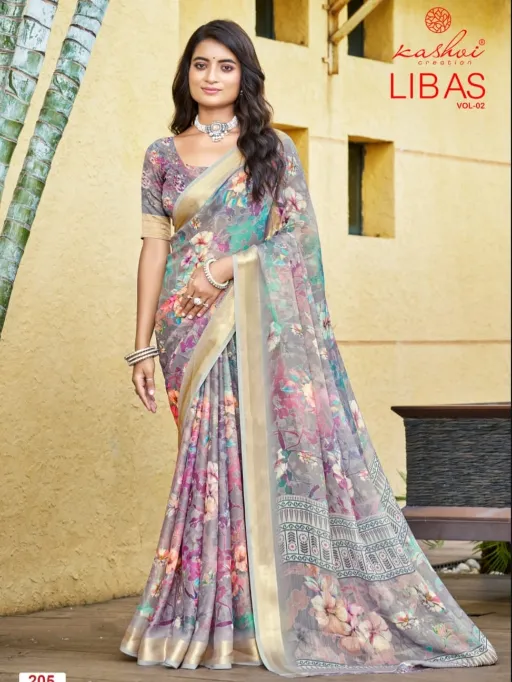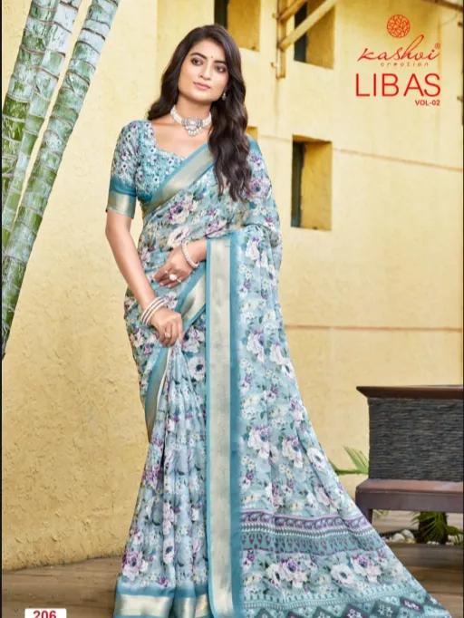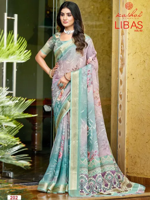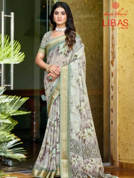 Kashvi Creation Libas Wholesale Dull Moss Sarees with Gold Zari Border Catalog.
