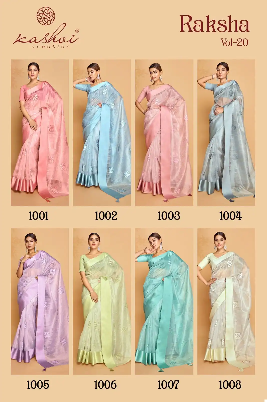 Kashvi Creation Raksha Vol 20 Organza Silk Wholesale Fancy Sarees Catalog