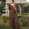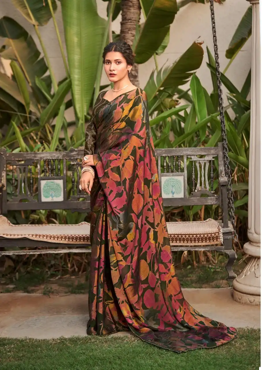 - The sarees are made from Dull Moss Brasso fabric, known for its subtle sheen and texture.
