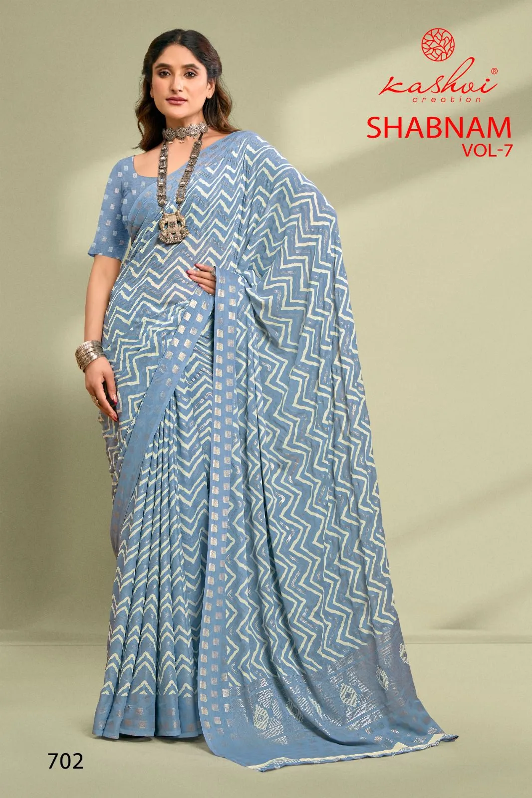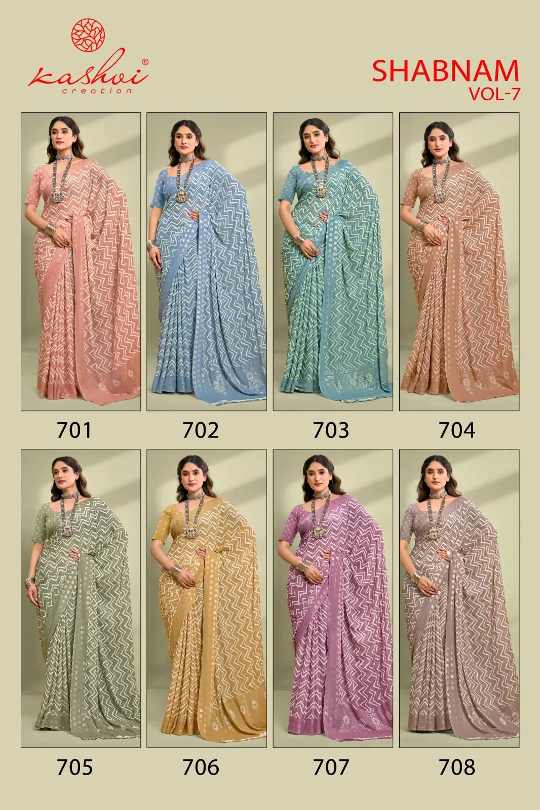 Kashvi Creation Shabnam Vol 7 Dull Moss Foil Print Wholesale Fancy Sarees Collection