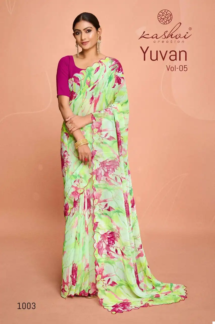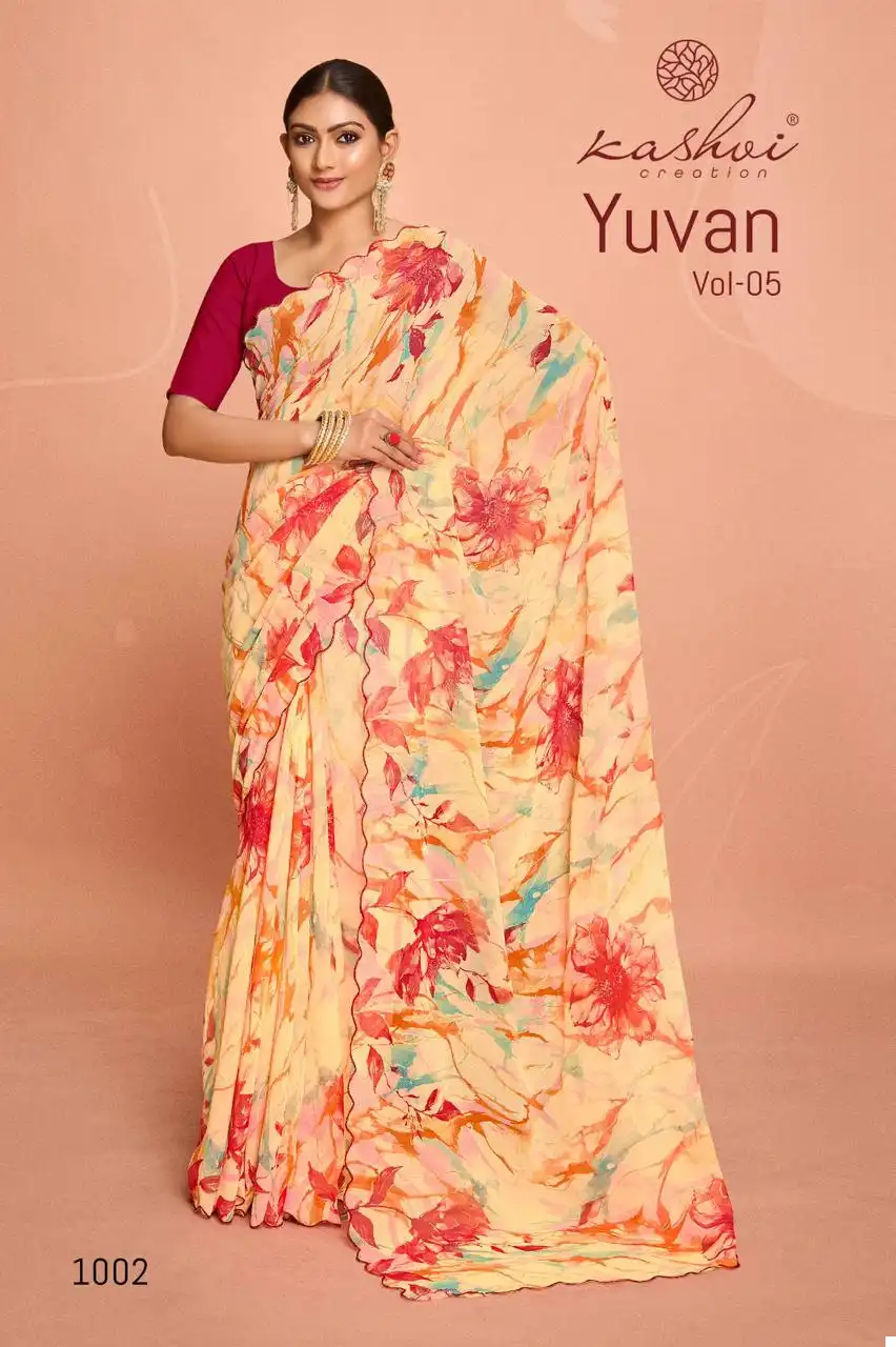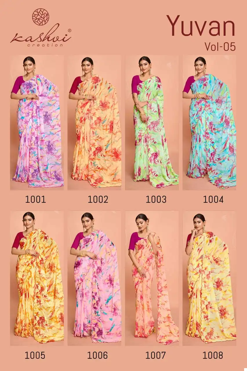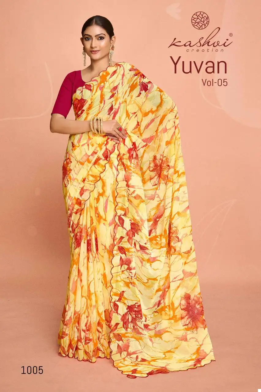 Kashvi Creation Yuvan Vol 5 Georgette Wholesale Fancy Sarees Catalog