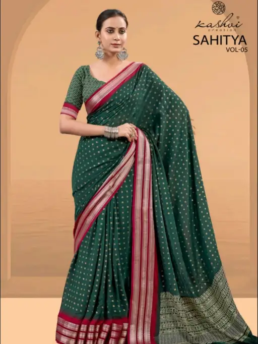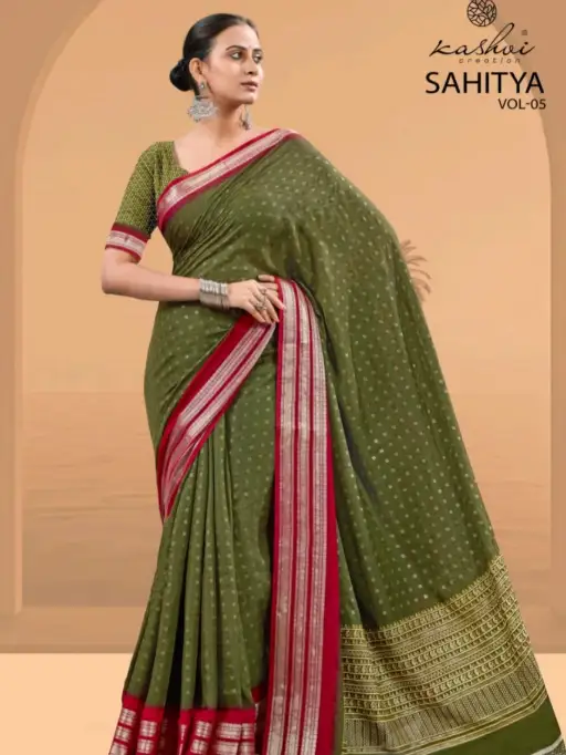 Kashvi Sahitya Vol 5 Dull Moss Print Sarees Wholesale Collection.