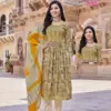 | Top | Capsule Foil Print Embroidery on Neck and Daman with Sides With 45+ Inch Height |