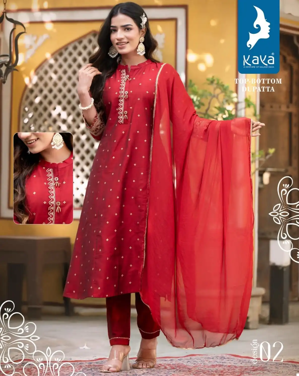 Kaya understands the need for variety, and the Aadhya catalog delivers just that. With a wide range of colors, patterns, and styles, you can effortlessly find the perfect suit for every occasion. Whether it’s a family celebration, a wedding, or a festive gathering, these suits cater to your diverse fashion needs.