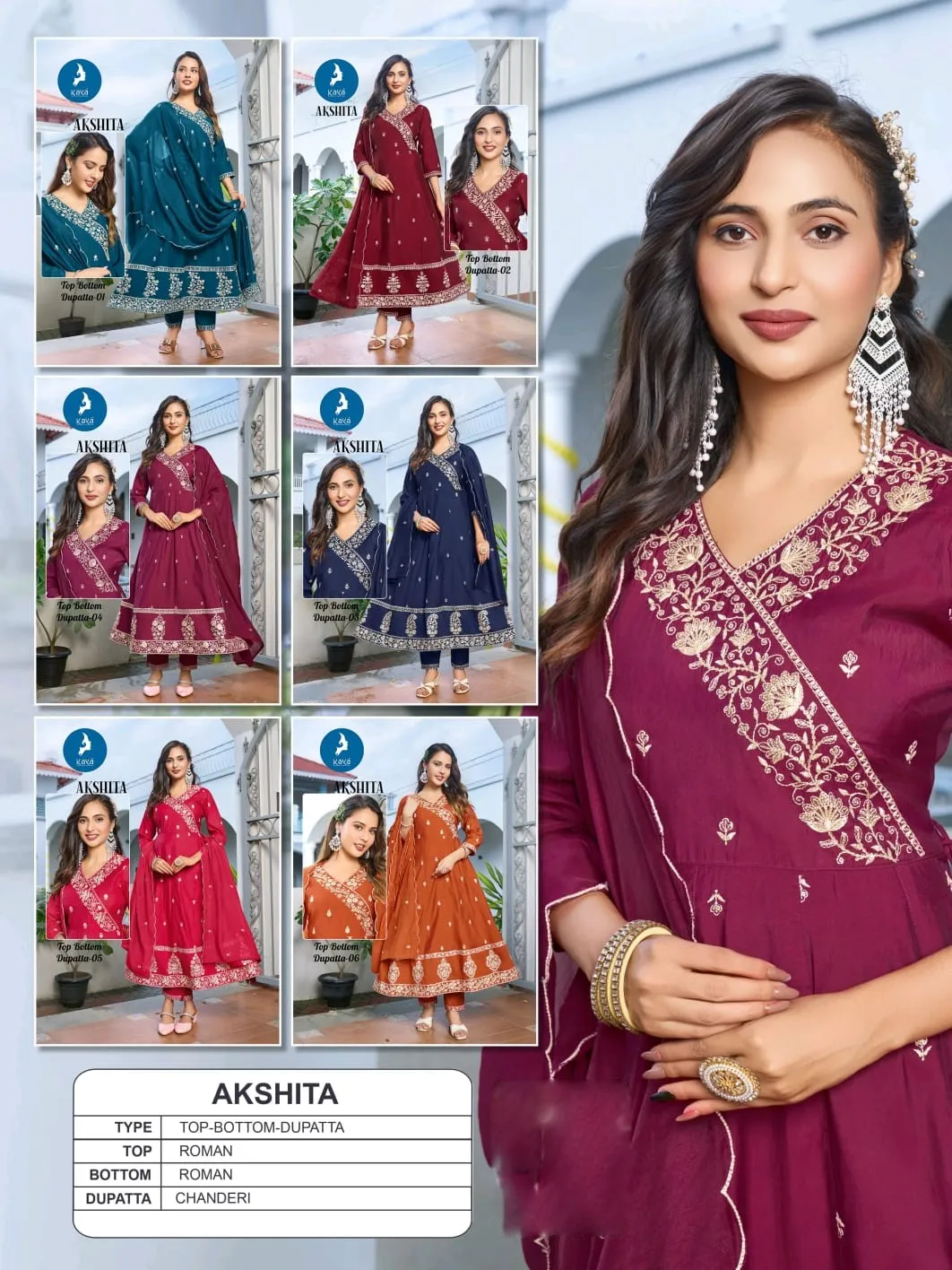 Kaya Akshita Roman Festival Wear Kurti Pant And Dupatta Set