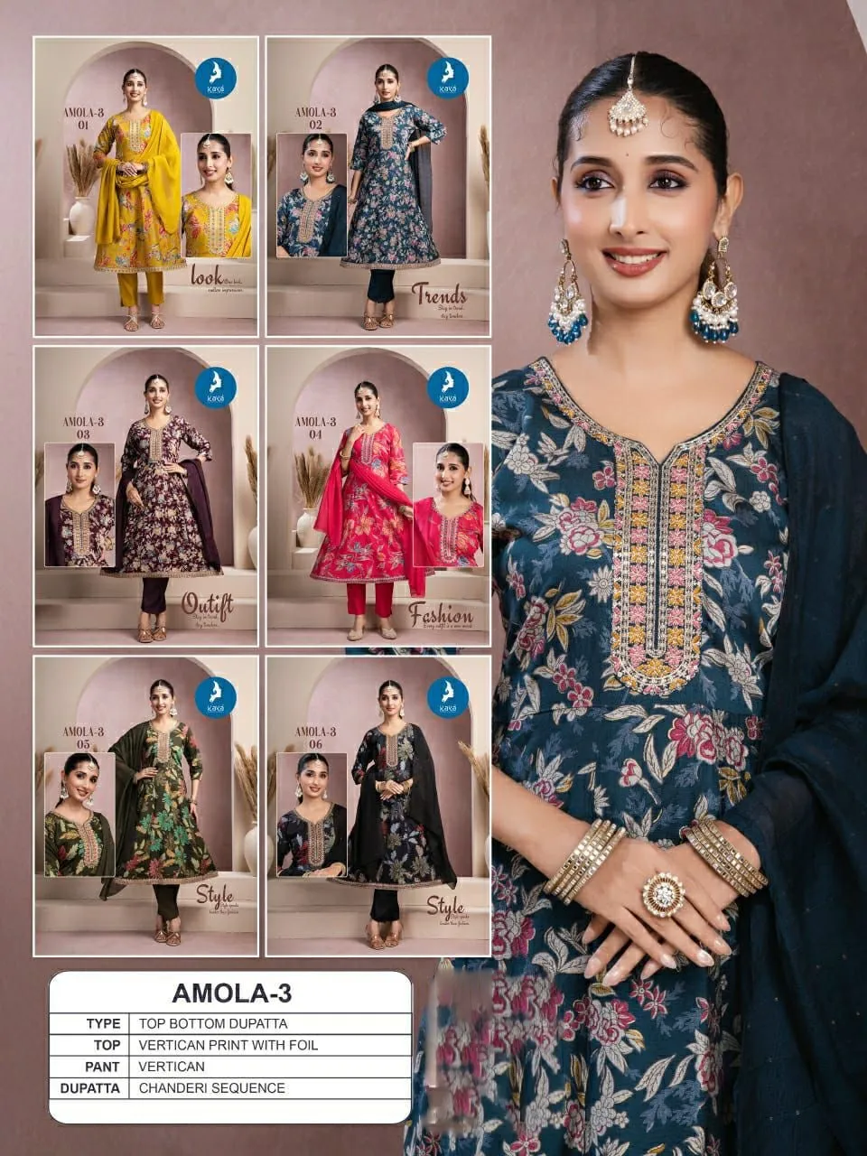 Kaya Amola Vol 3 Vertican Print With Foil Kurti Pant Set