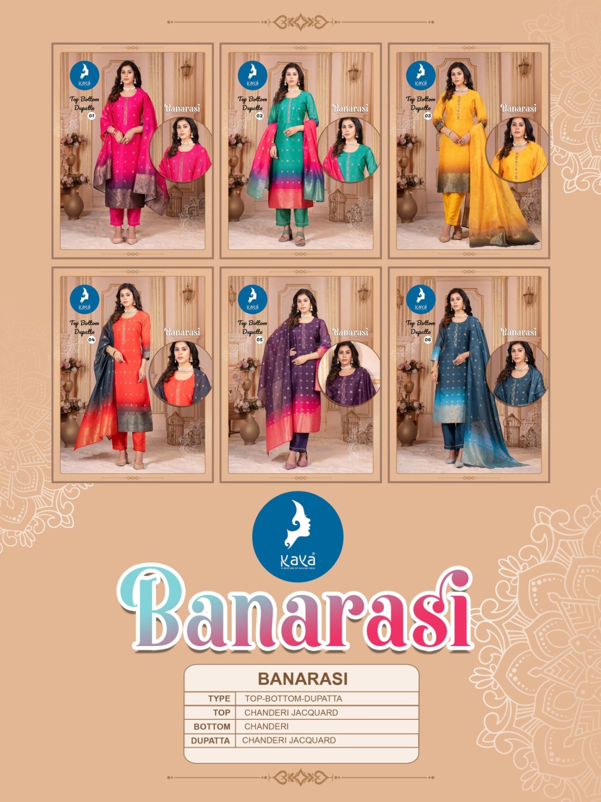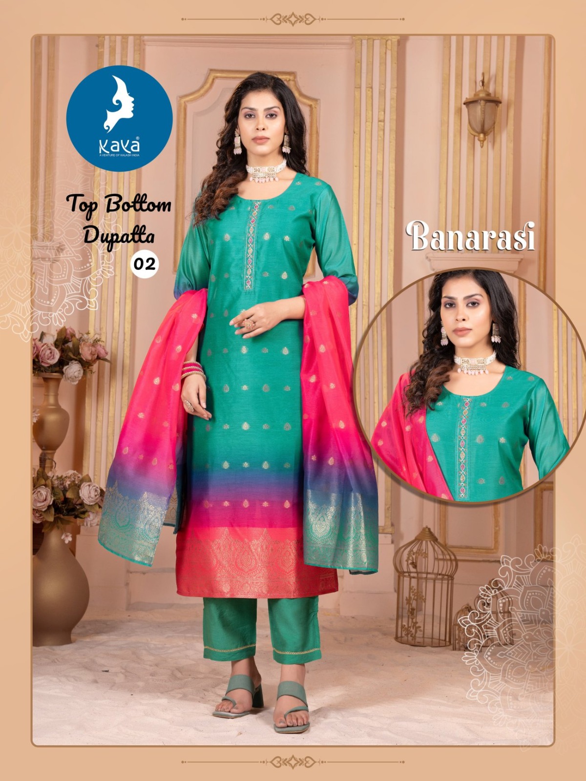 Kaya Banarasi Chanderi Jacquard Wholesale Kurti Bottom With Dupatta Collection