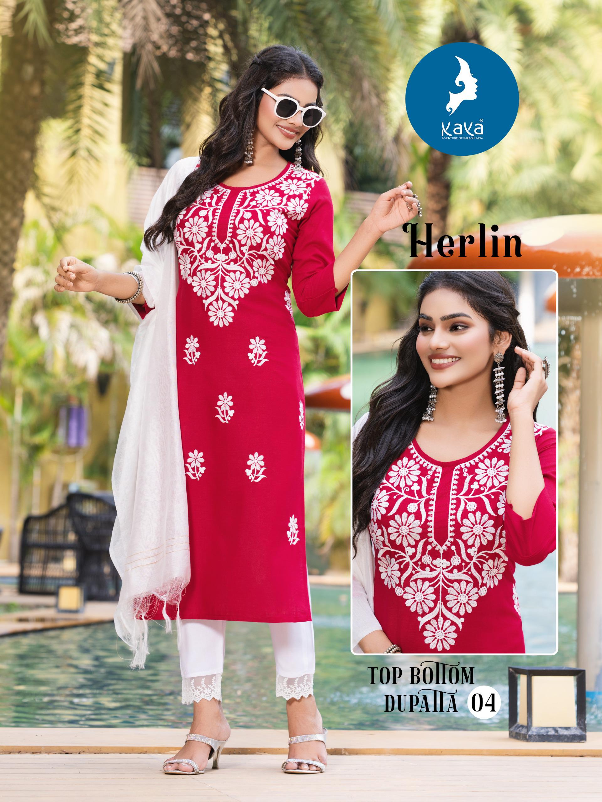 Kaya Kurti Herlin Wholesale Readymade Rayon Slub Kurti Set