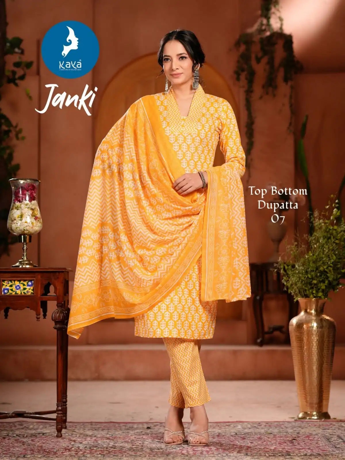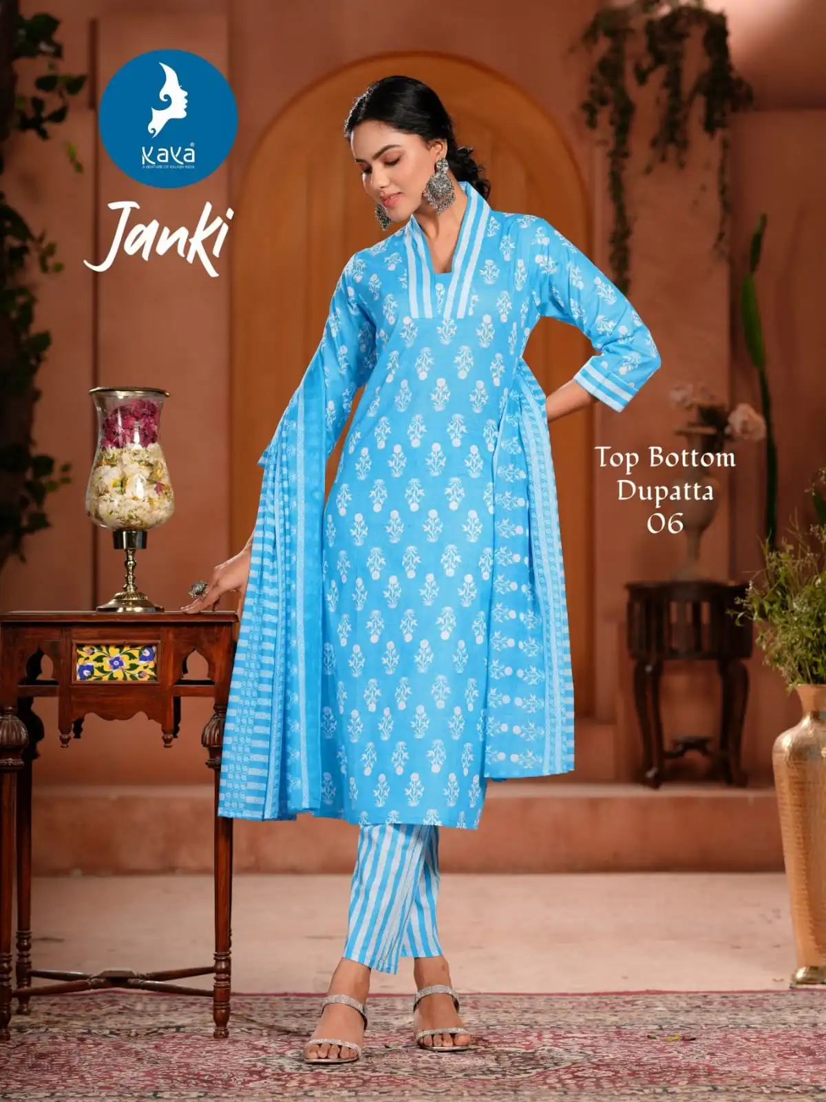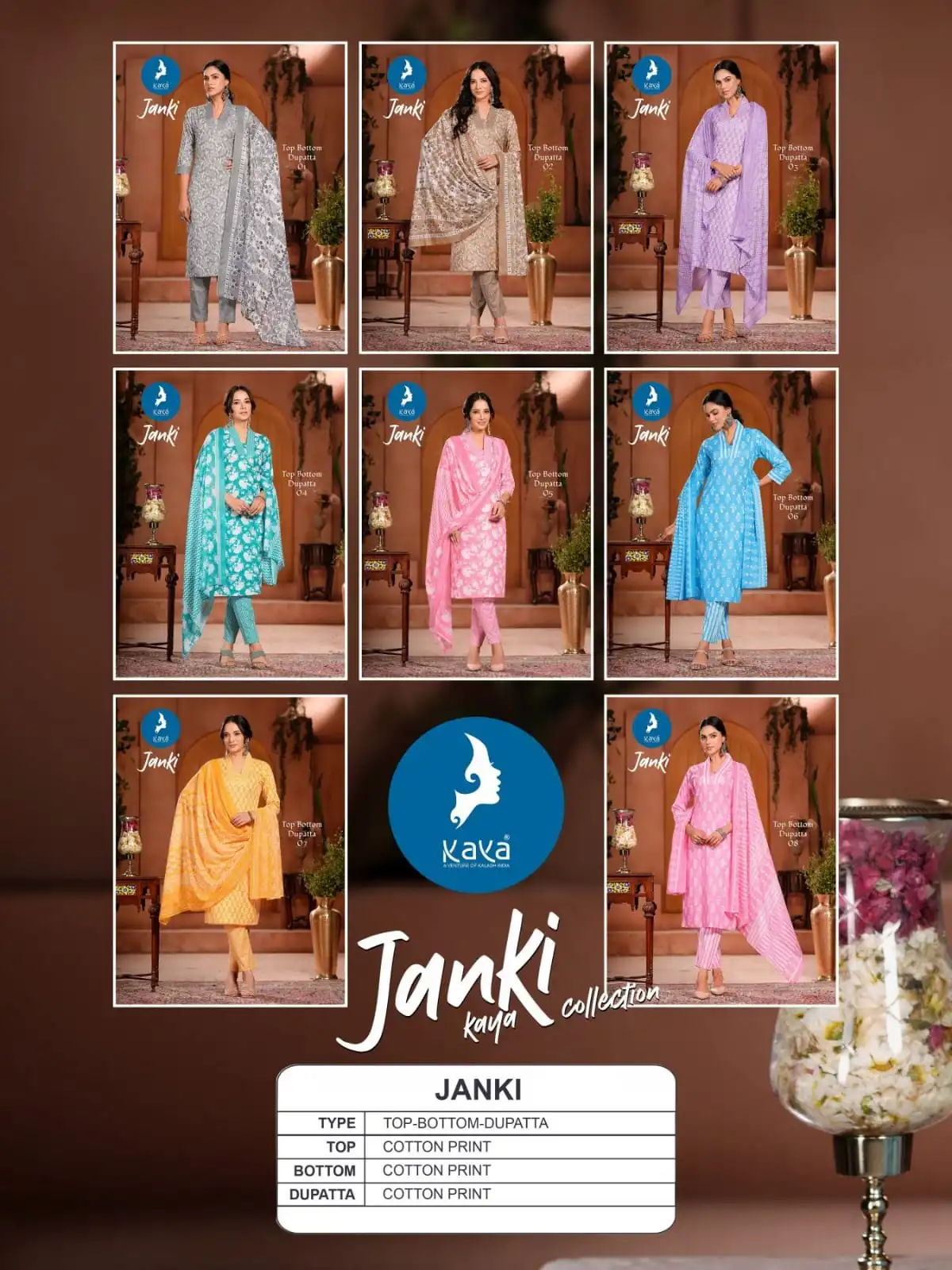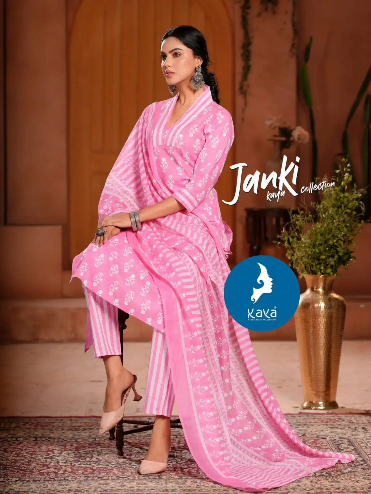 Kaya Kurti Janki Cotton Printed Kurti Set with Bottom & Dupatta Wholesale Collection.