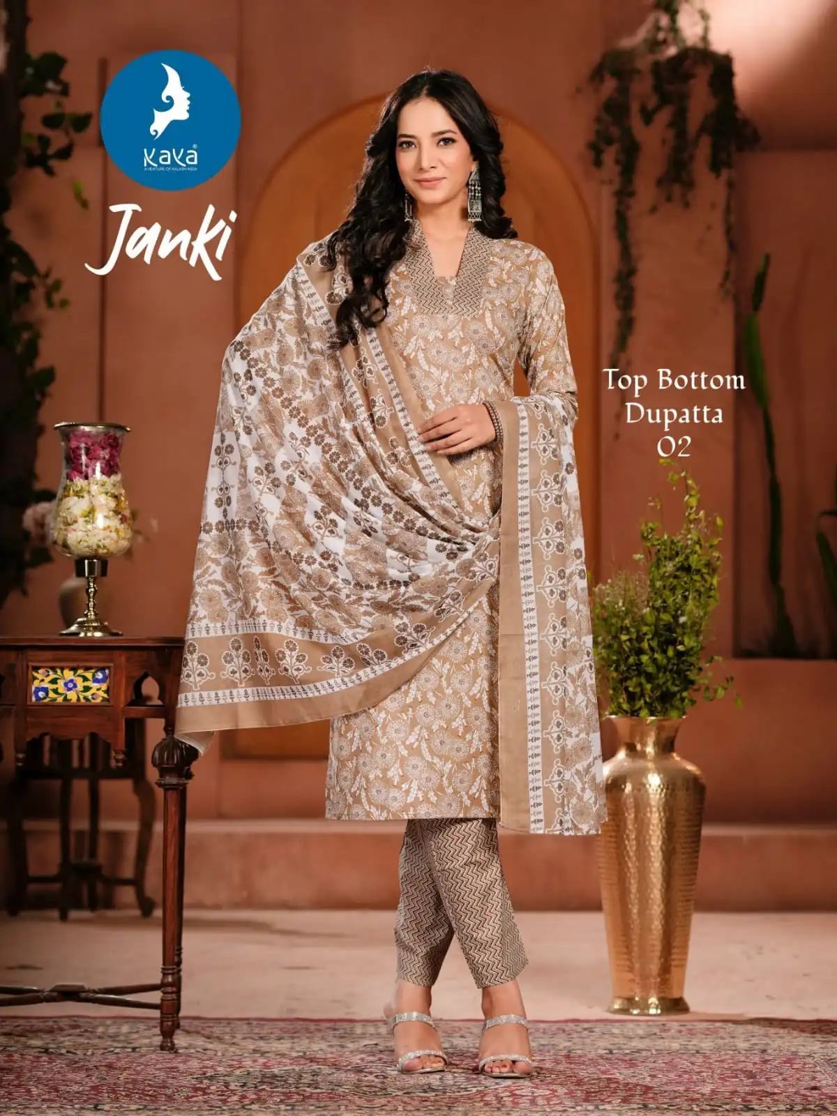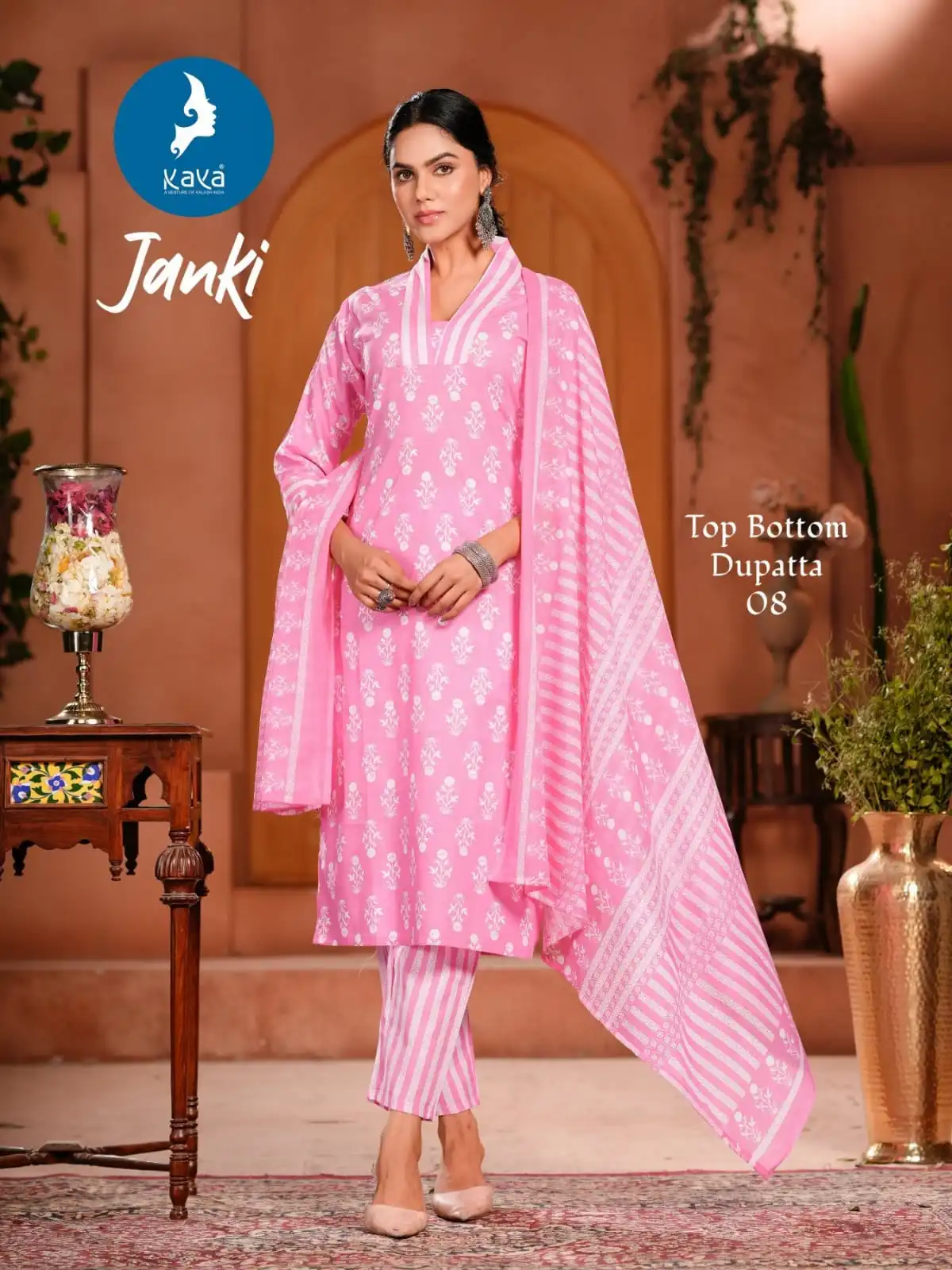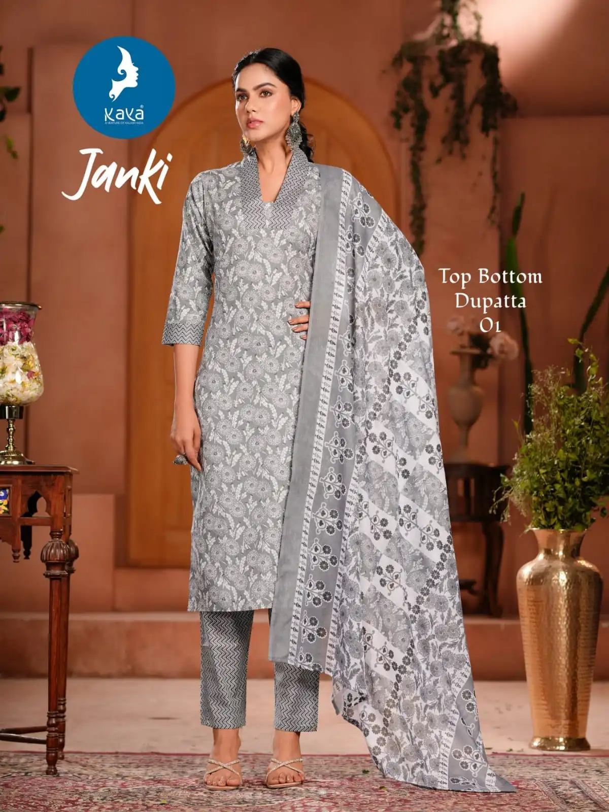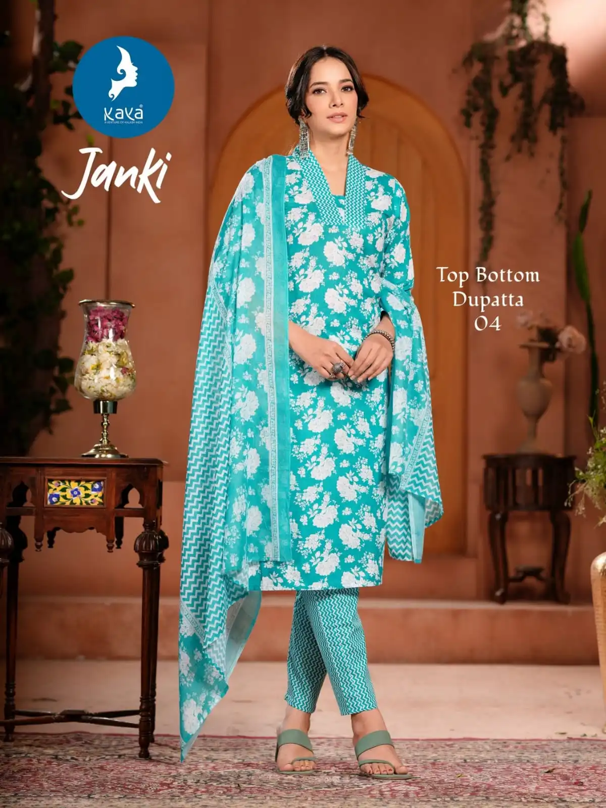 Kaya Kurti Janki Cotton Printed Kurti Set with Bottom & Dupatta Wholesale Collection.