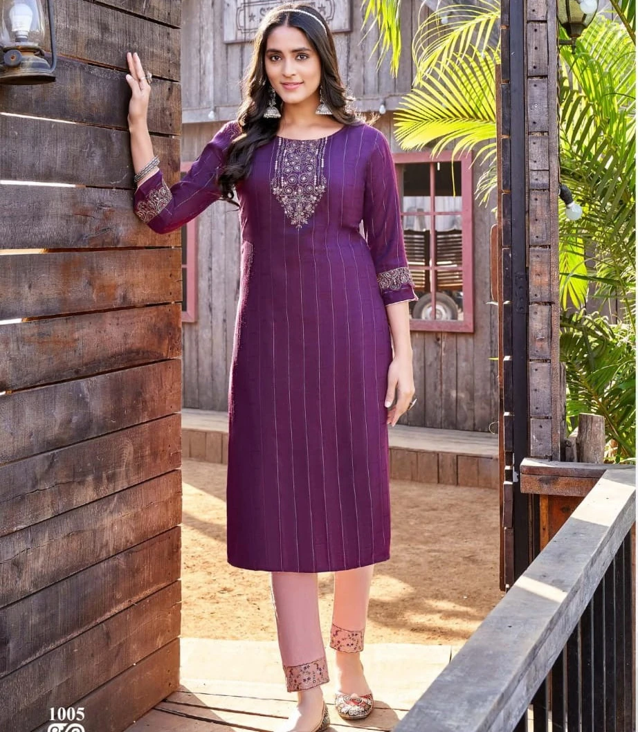 This heavy dobby rayon set collection combines luxury, comfort, and style at an affordable price of ₹675 per piece. Each set includes six ensembles available in sizes ranging from S to 3XL, ensuring a fit for various body types. Sold as complete sets, they provide excellent value and versatility for both casual and semi-formal occasions.