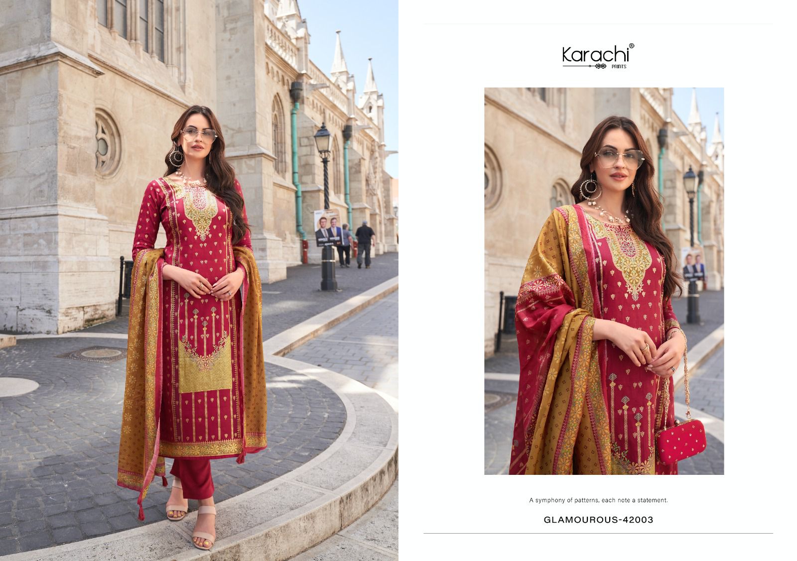 Top Pure Jam Satin Glitler Gold Digitally Printed With Elegant Hand Work