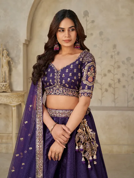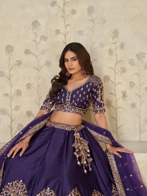 KF-2102 Purple Banarasi Silk Bridal Lehenga Choli Collection