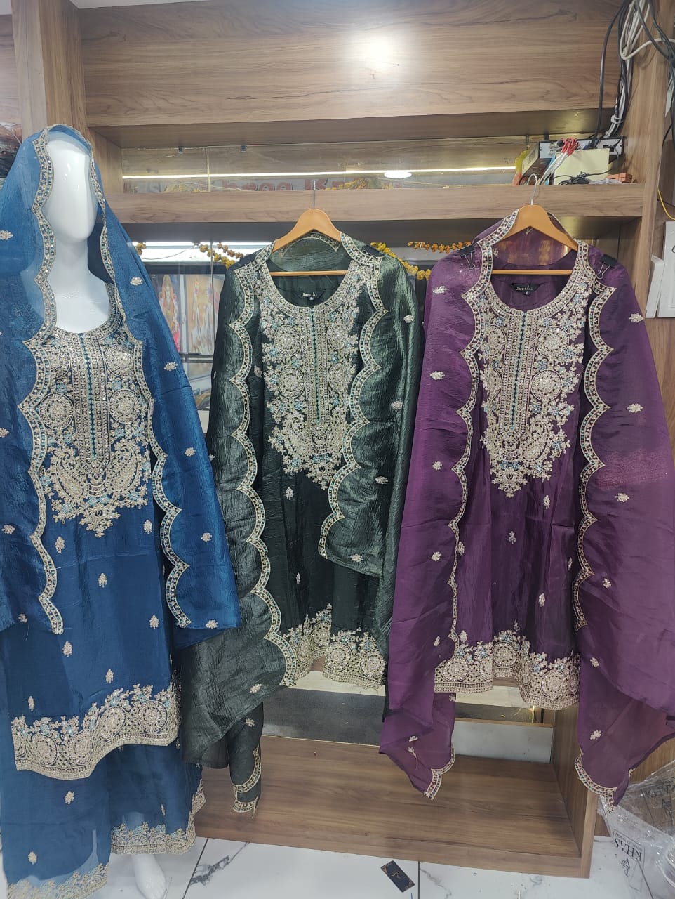Step into elegance with the latest ready-to-wear designer collection! This premium silk ensemble is adorned with intricate front and back embroidery, making it a must-have for festive and wedding occasions.