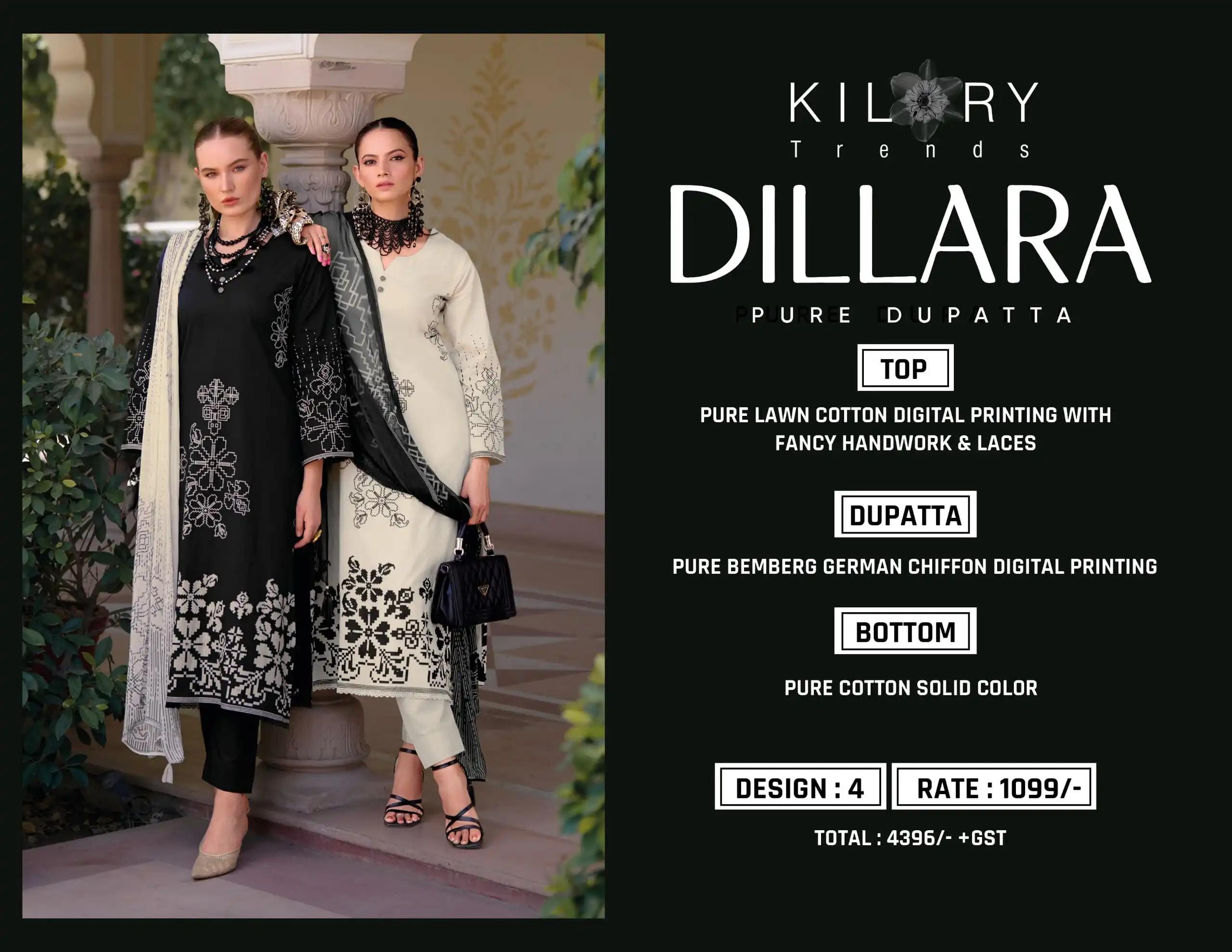 Kilory Dillara Lawn Cotton Pakistani Suit Wholesale Collection.